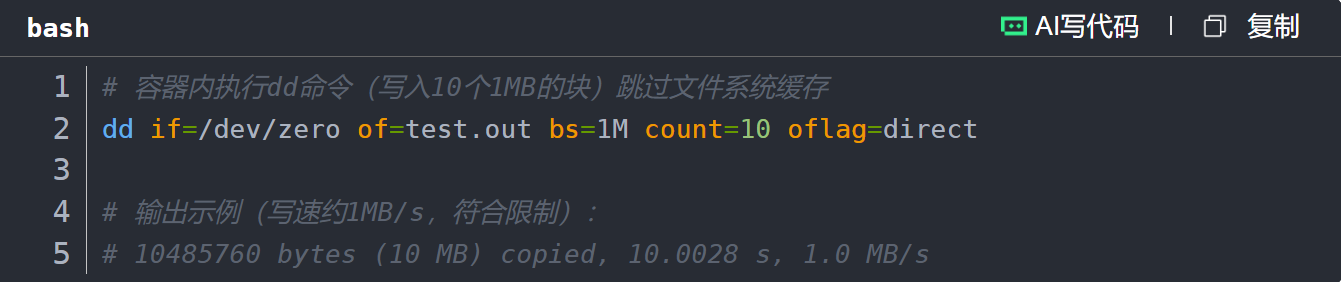 实战示例:限制容器对/dev/sda(宿主机磁盘)的写速率为1MB/s