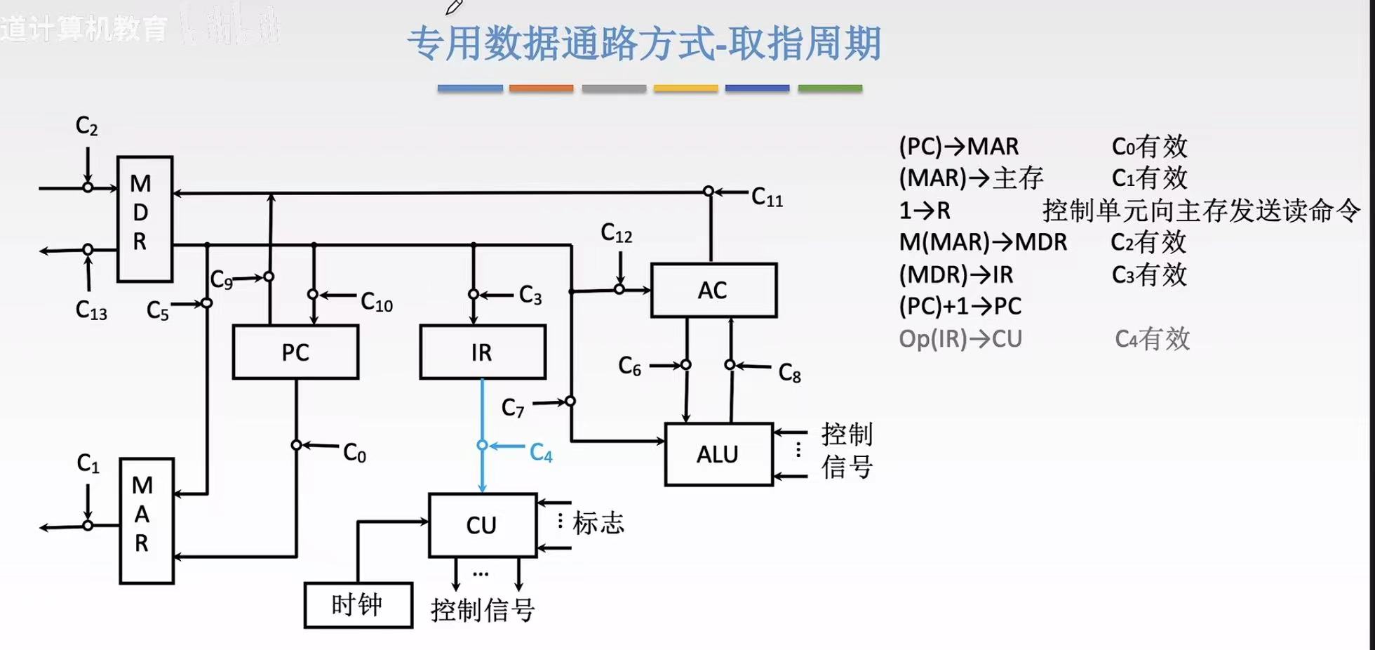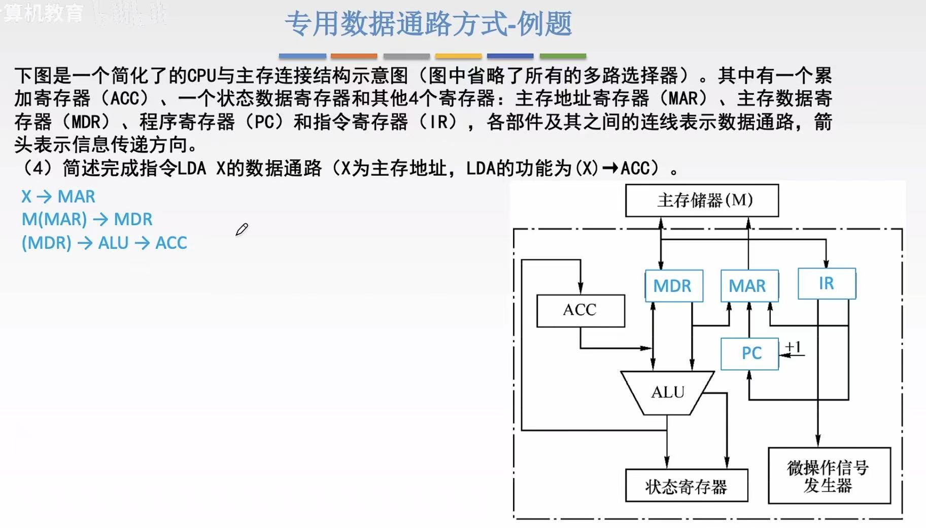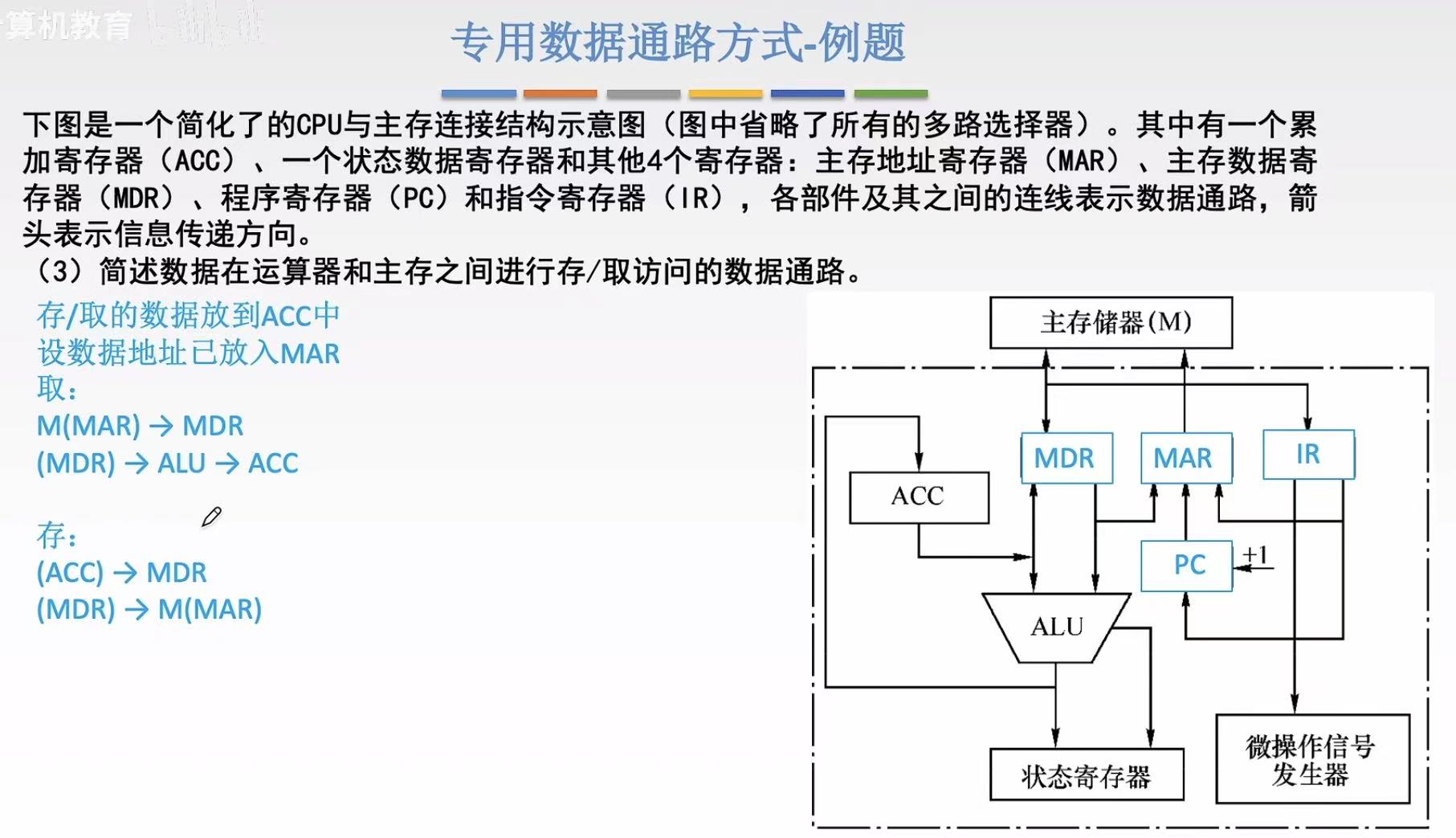 - (MDR)-->ALU-->ACC :把数据寄存器中的数据放入算术逻辑单元再放入累加器