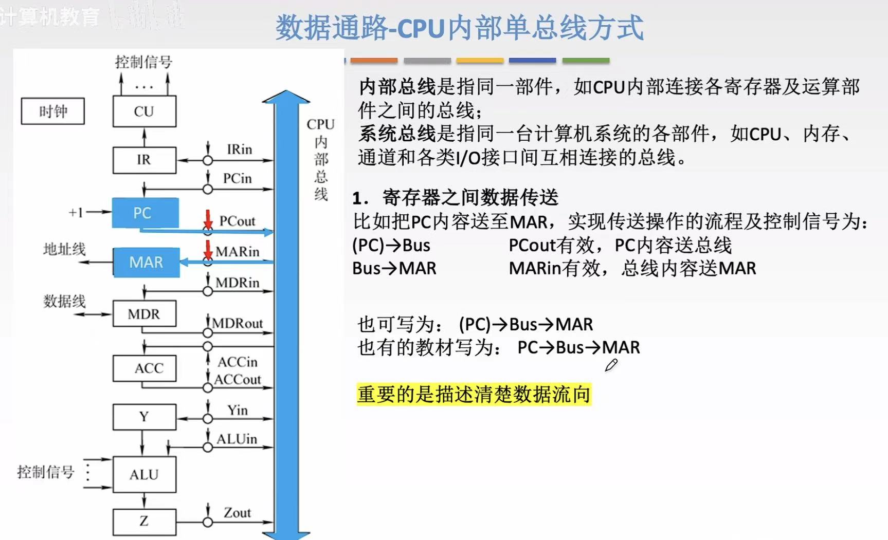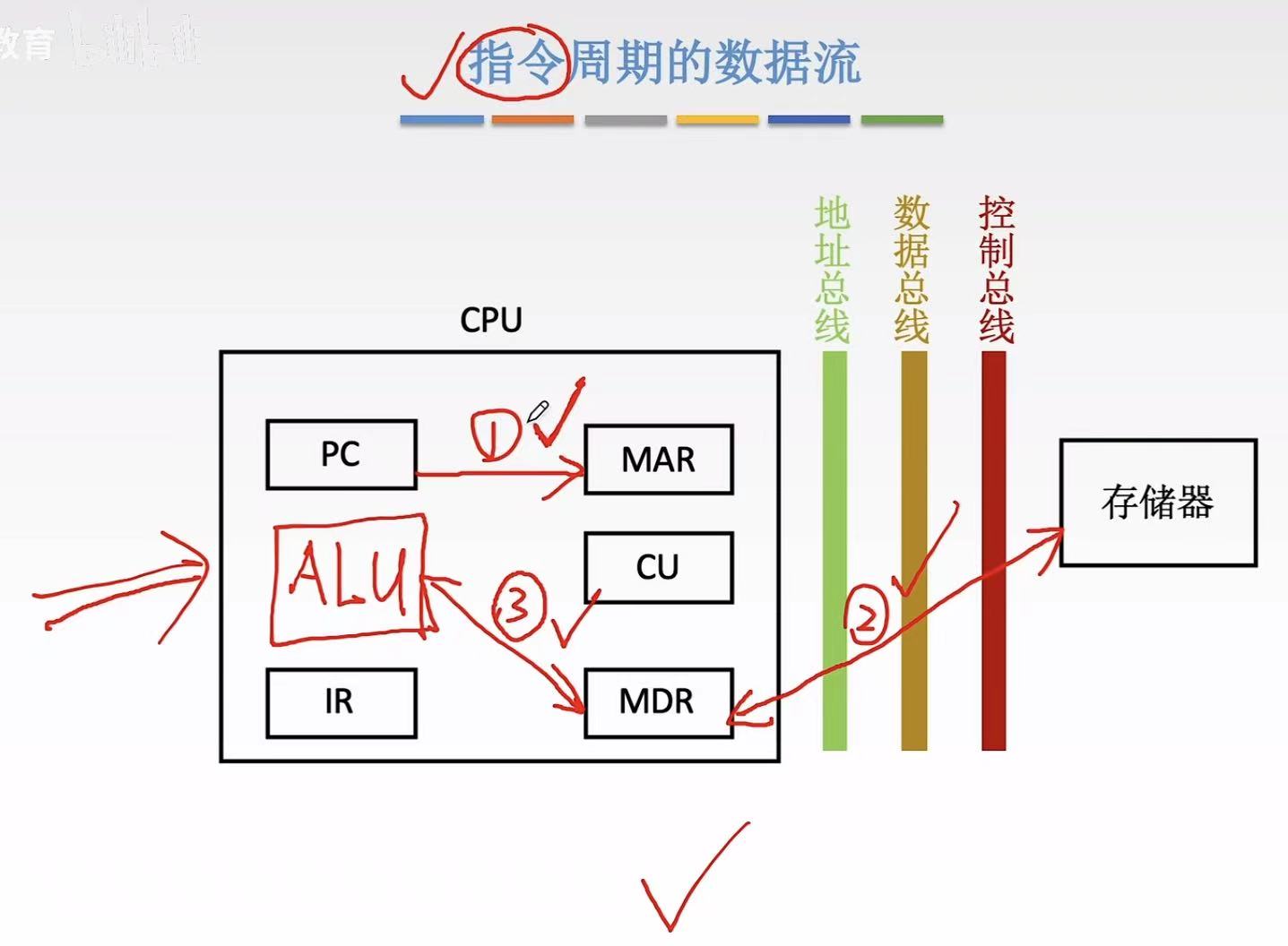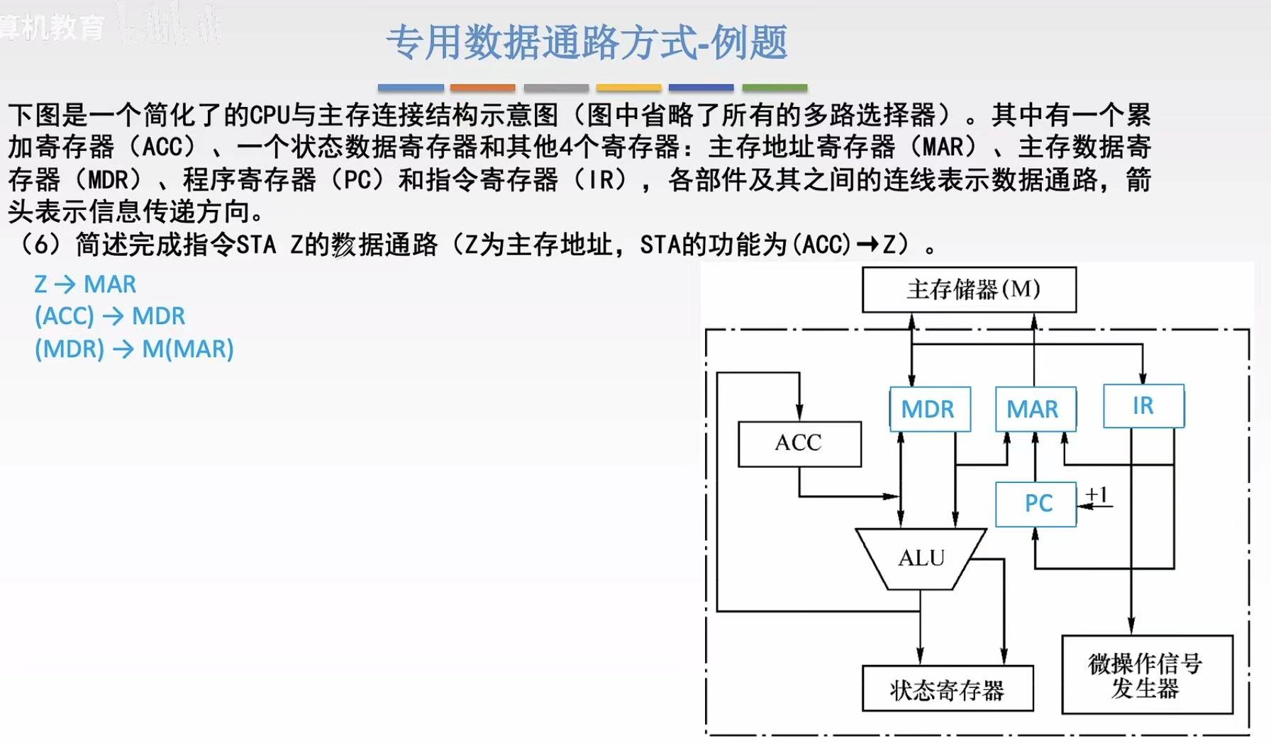 - (MDR)-->ALU-->ACC :把数据寄存器中的数据放入算术逻辑单元再放入累加器