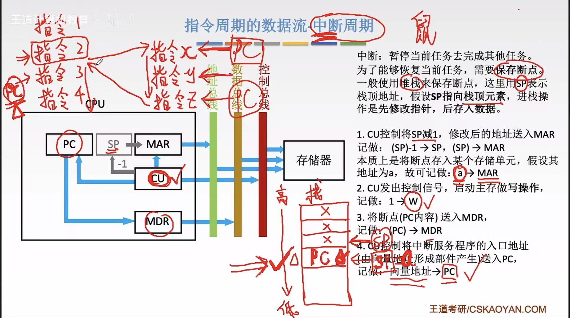 MDR: 是临时缓存,就像你脑子里先记着 - CU 控制将中断服务程序入口地址送入 PC