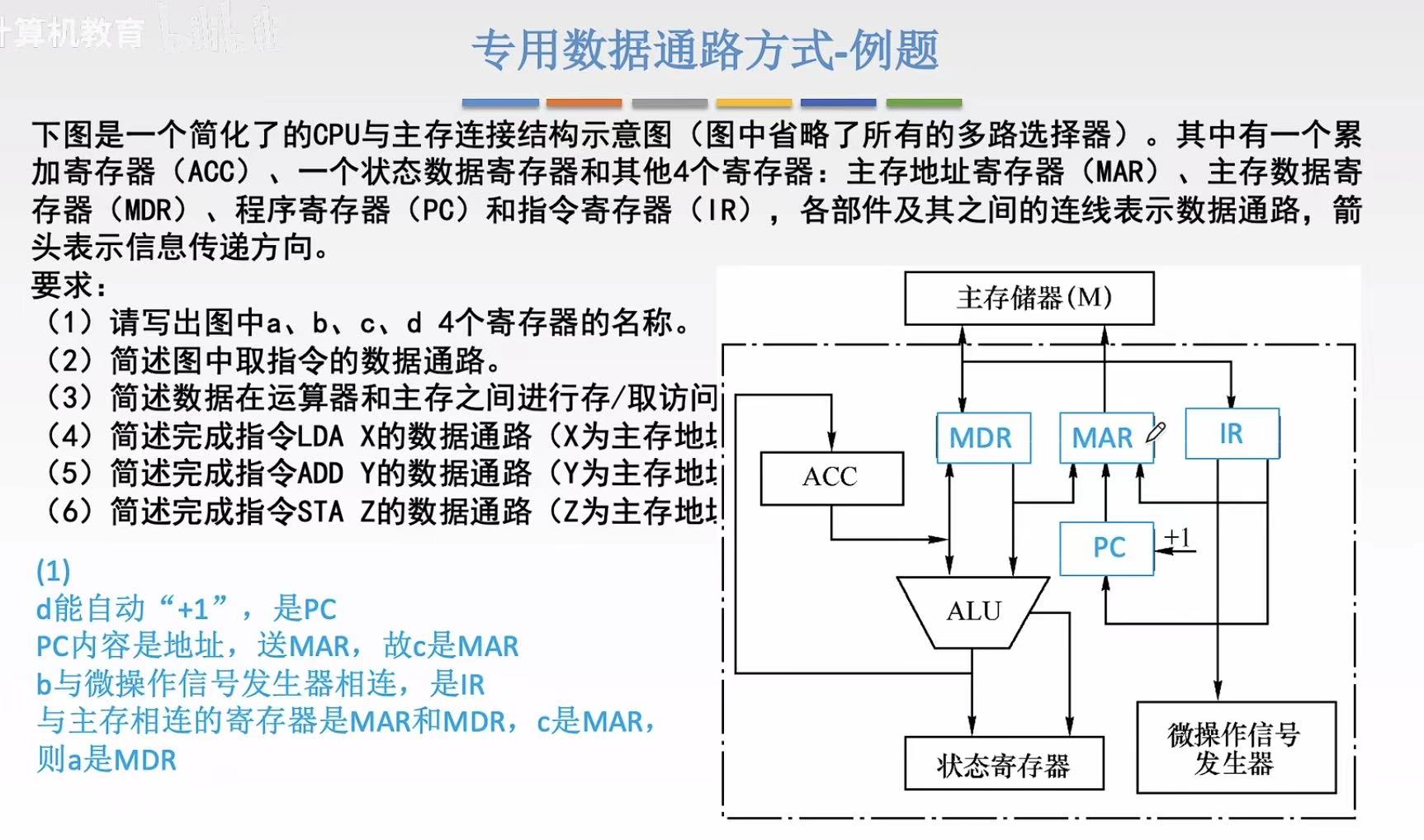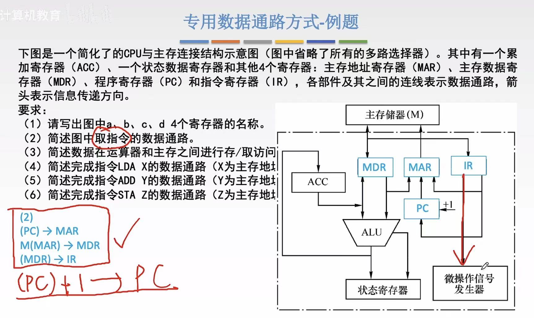 - (ACC)-->MDR:将ACC(上一题得到的数据)存入数据寄存器中