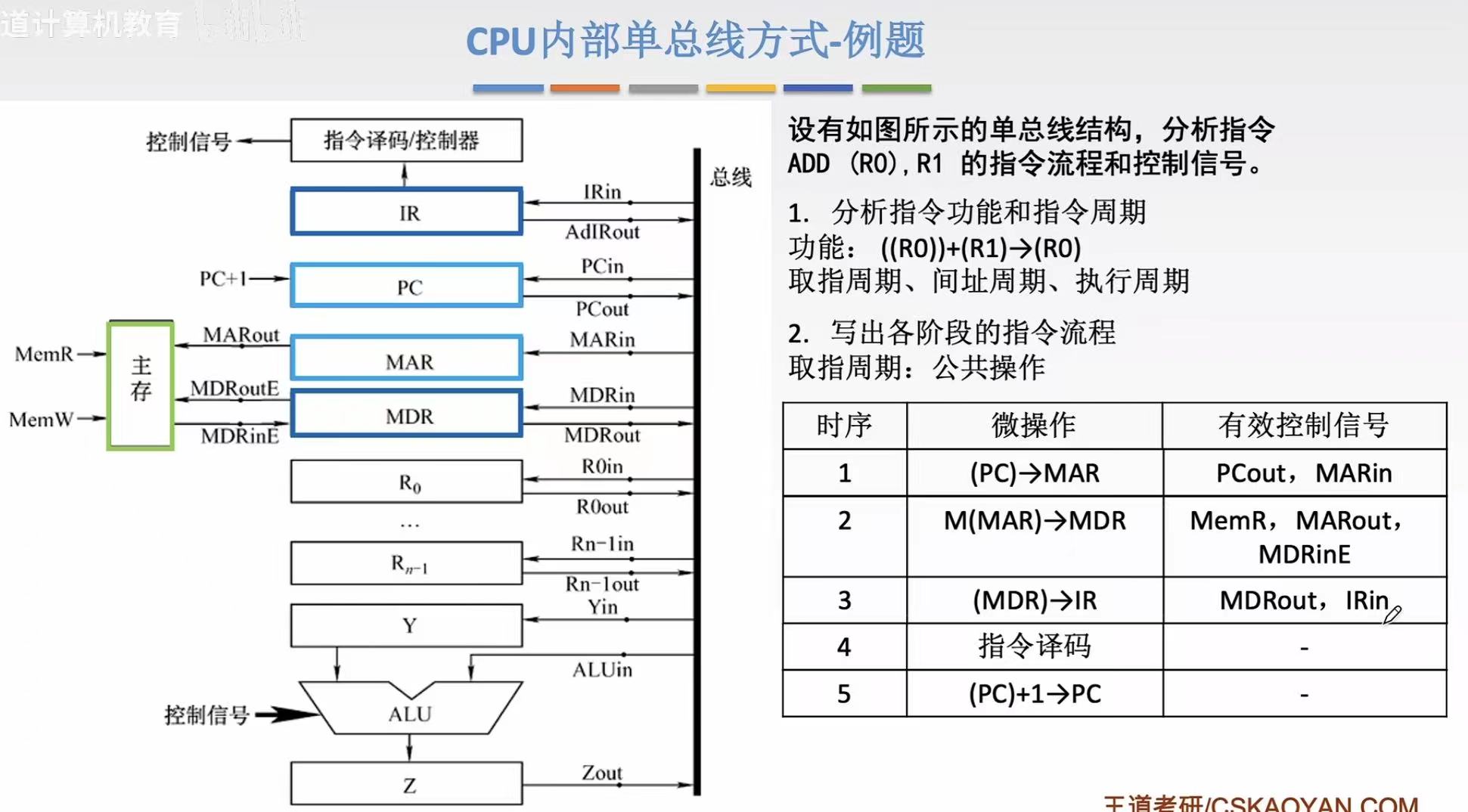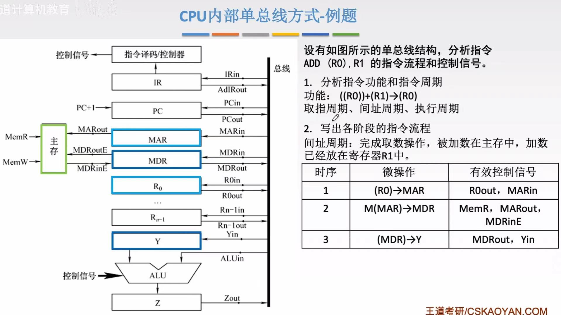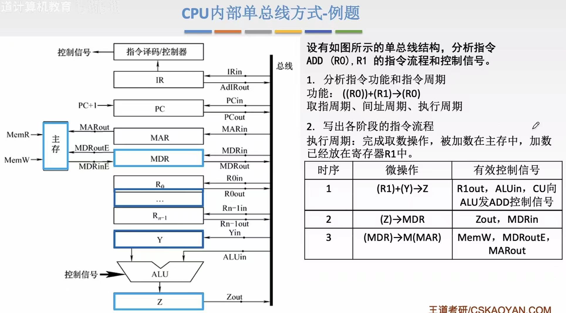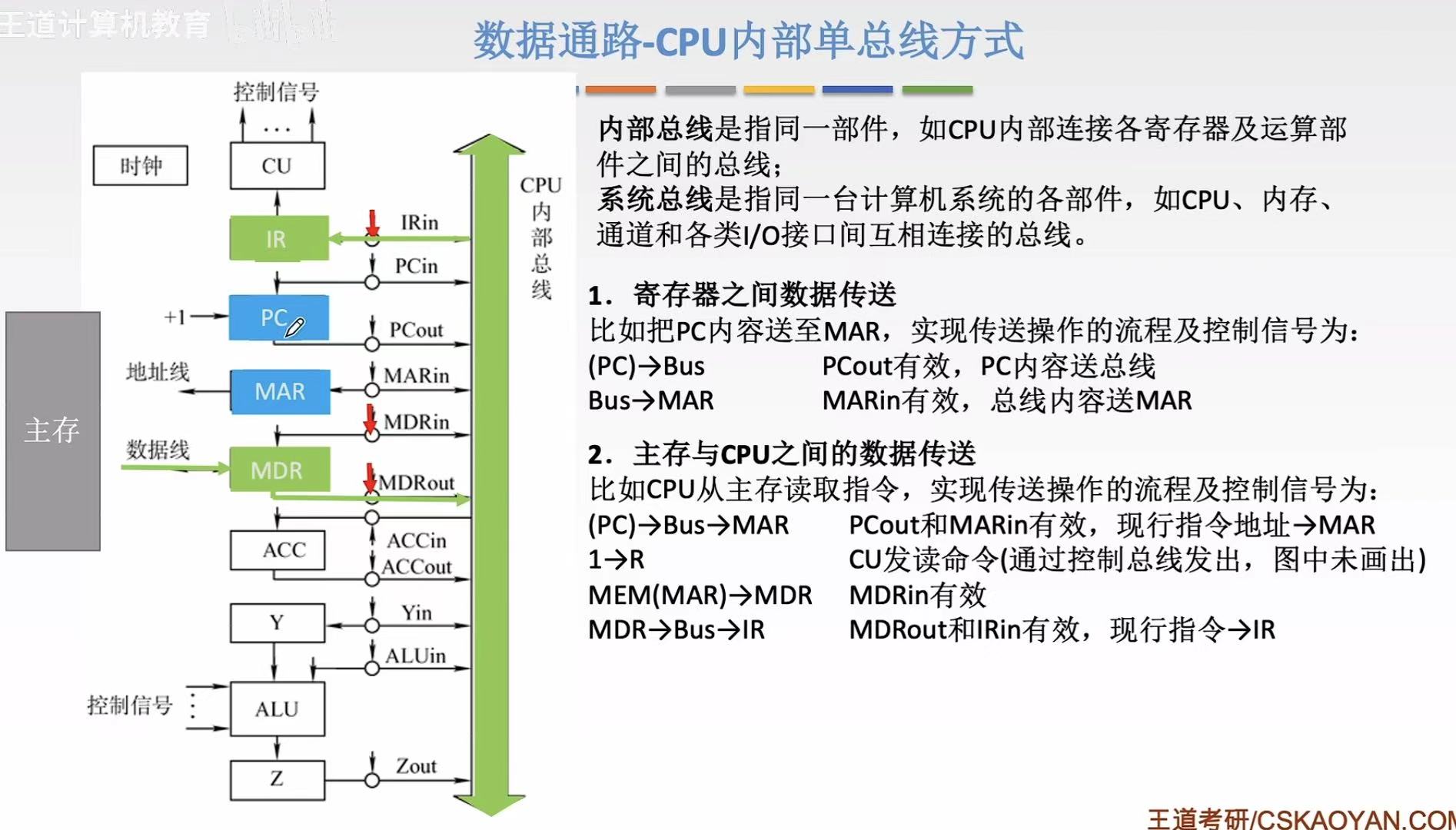 - MDR<-->主存<--MAR:和主存相连的只有MDR(双向)和MAR(单向)