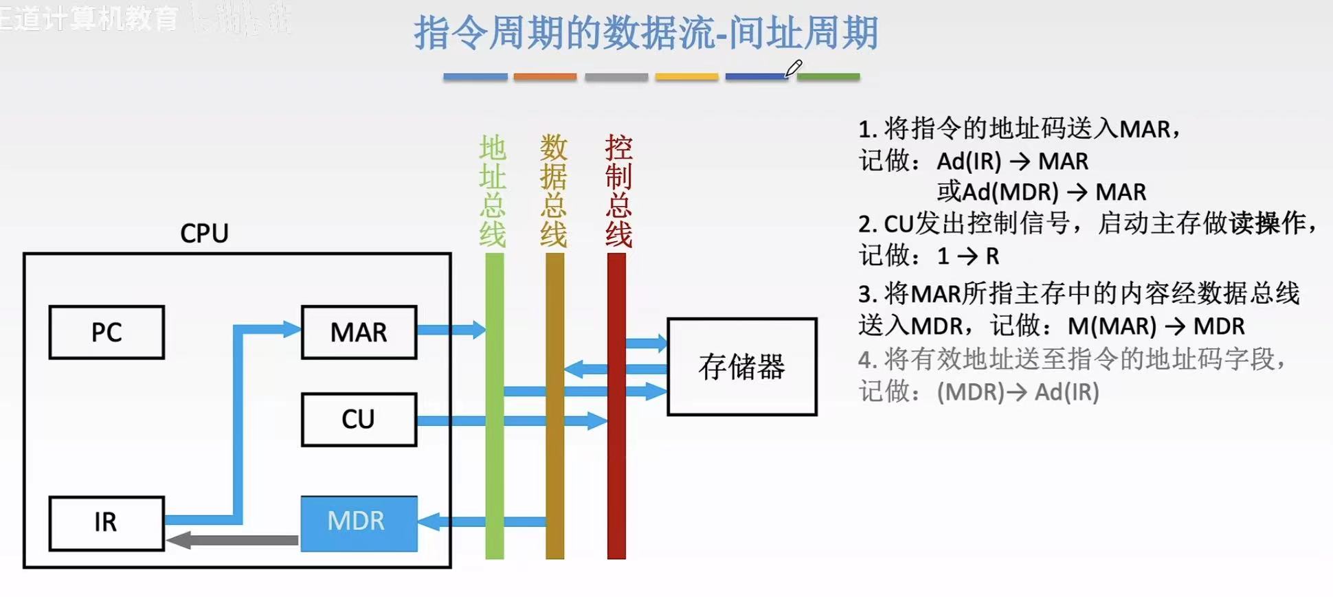 - 将有效地址送至指令的地址码字段:(MDR)-->Ad(IR)