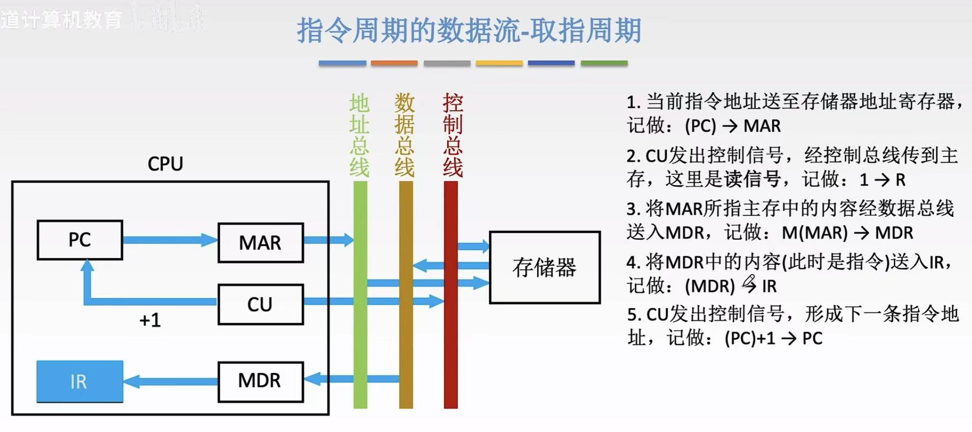 - 数据寄存器得到指令传入指令寄存器:(MDR)-->IR