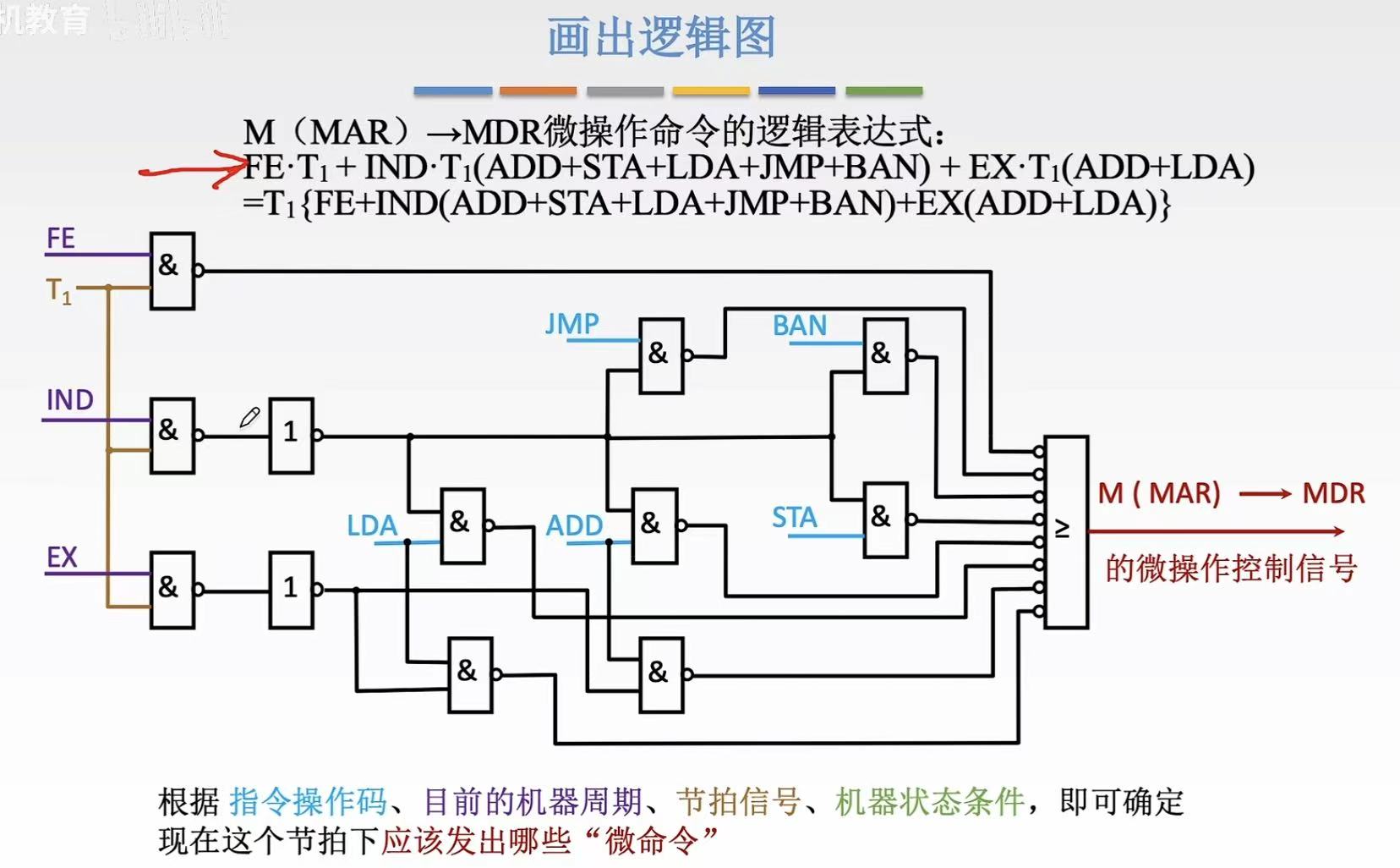 然后根据逻辑表达式:·就是与,+就是或,排好每个指令之间的关系,你就可以得到这么一个逻辑图: