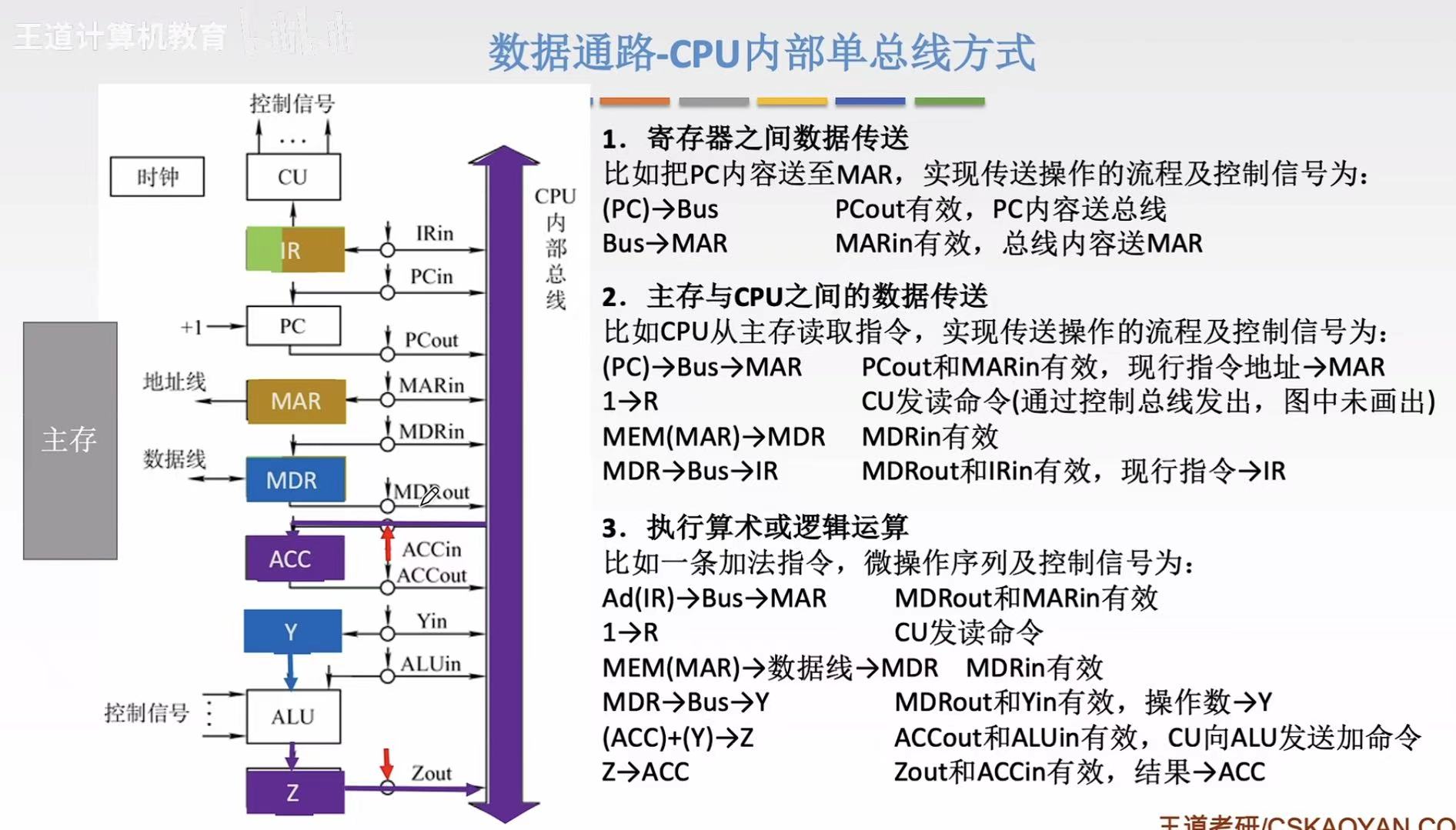 主存与CPU之间的数据传送(包含寄存器之间数据传送):