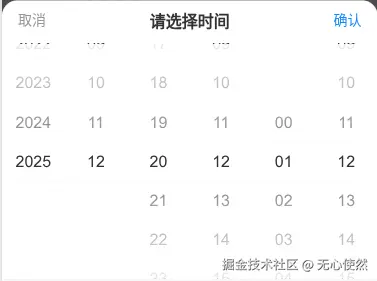 const values = ref(['2025','12','23','12','01','12']);//设置初始日期时间