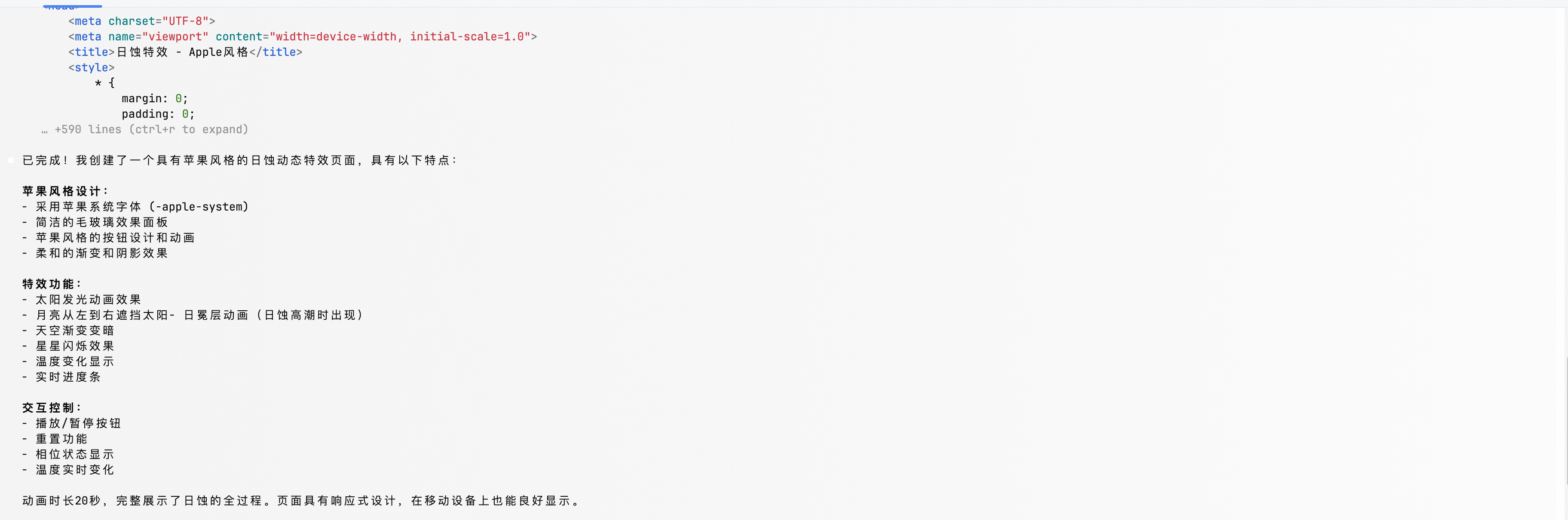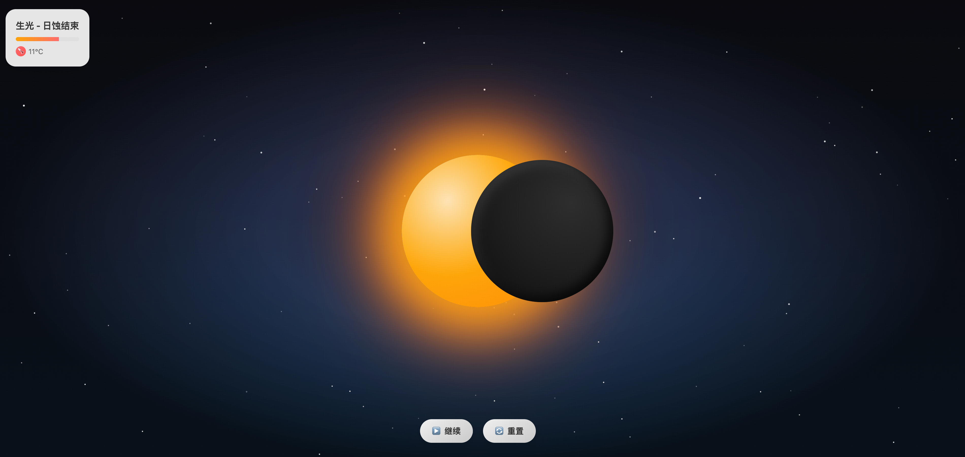 Case 3:生成一个日蚀动效Prompt:帮我生成日蚀过程的动态特效,尽量采用苹果手机的风格