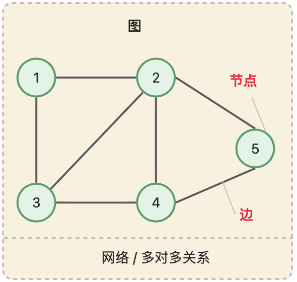 图(Graph)是用"点 + 边"来描述"多对多的关系网络"。