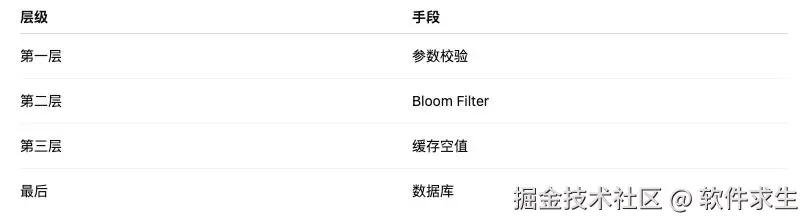 其中布隆过滤器用于从源头拦截不存在的数据,是大规模系统中最常见的方案。