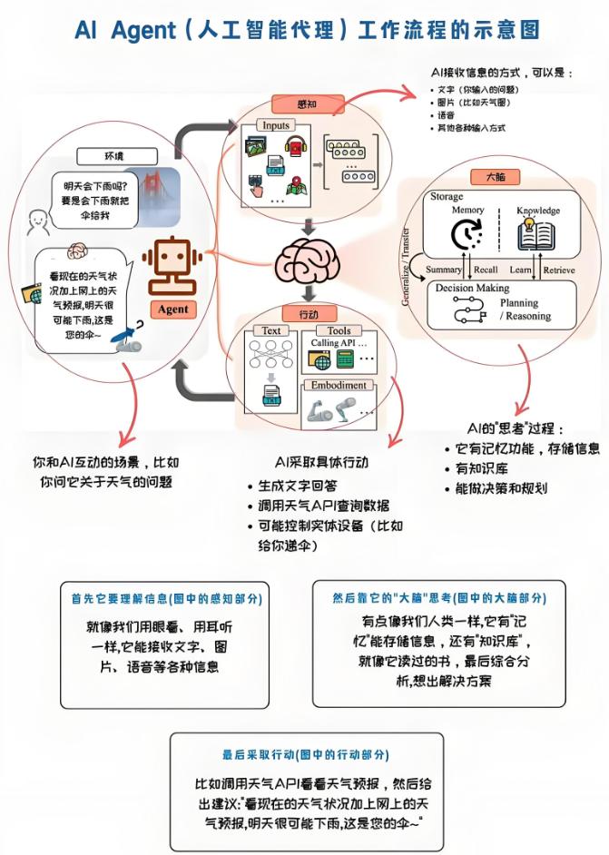 在实际实现中,智能体通常由多个功能模块组成,包括感知模块、决策模块、通信模块、执行模块、知识库和任务表等 。这些模块的协同工作使智能体能够完成复杂的感知、决策和执行循环。