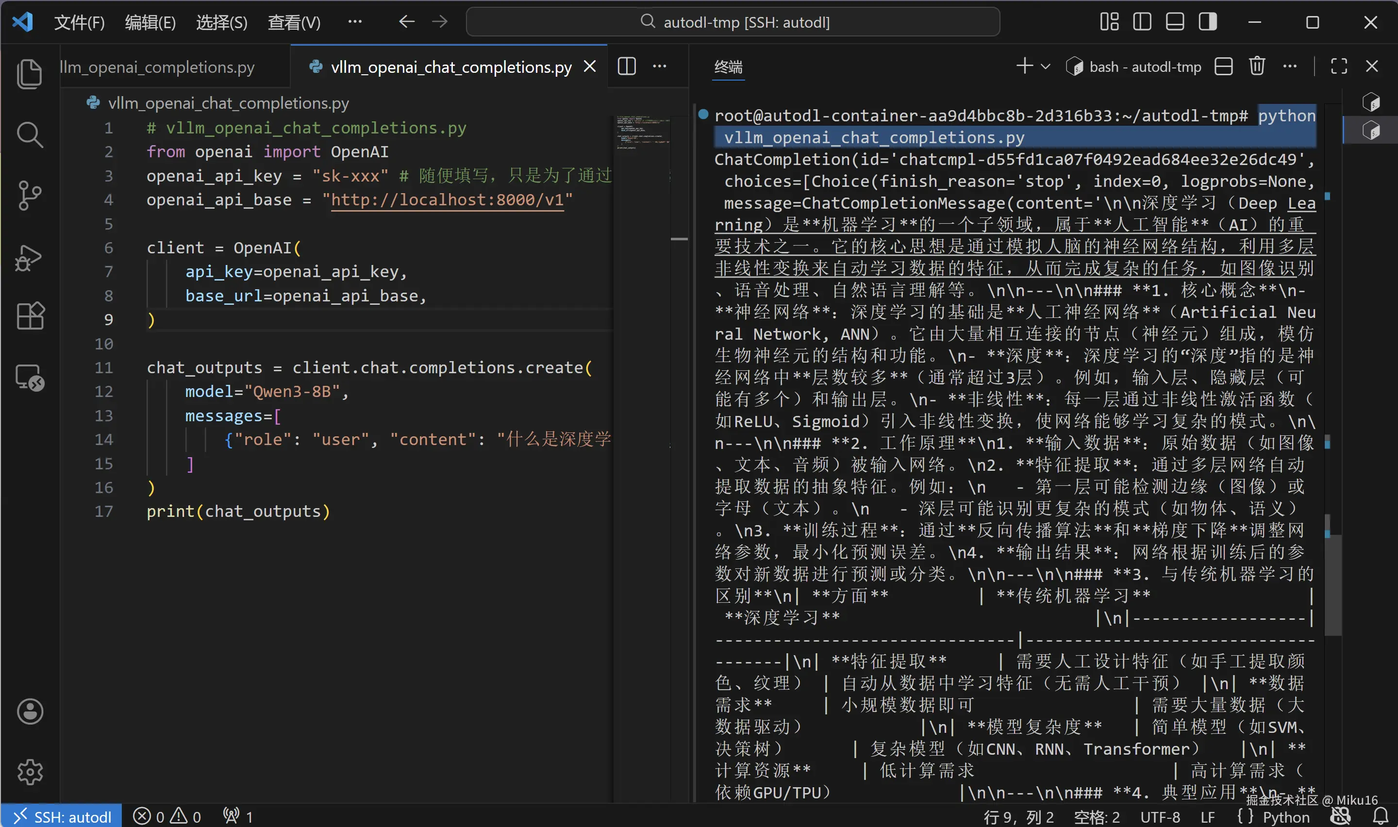 实践日期 :2025年12月23日 vLLM 版本 :0.8.5.post1 模型 :Qwen3-8B 平台 :AutoDL(RTX 4090 24GB) 参考教程 :github.com/datawhalech...