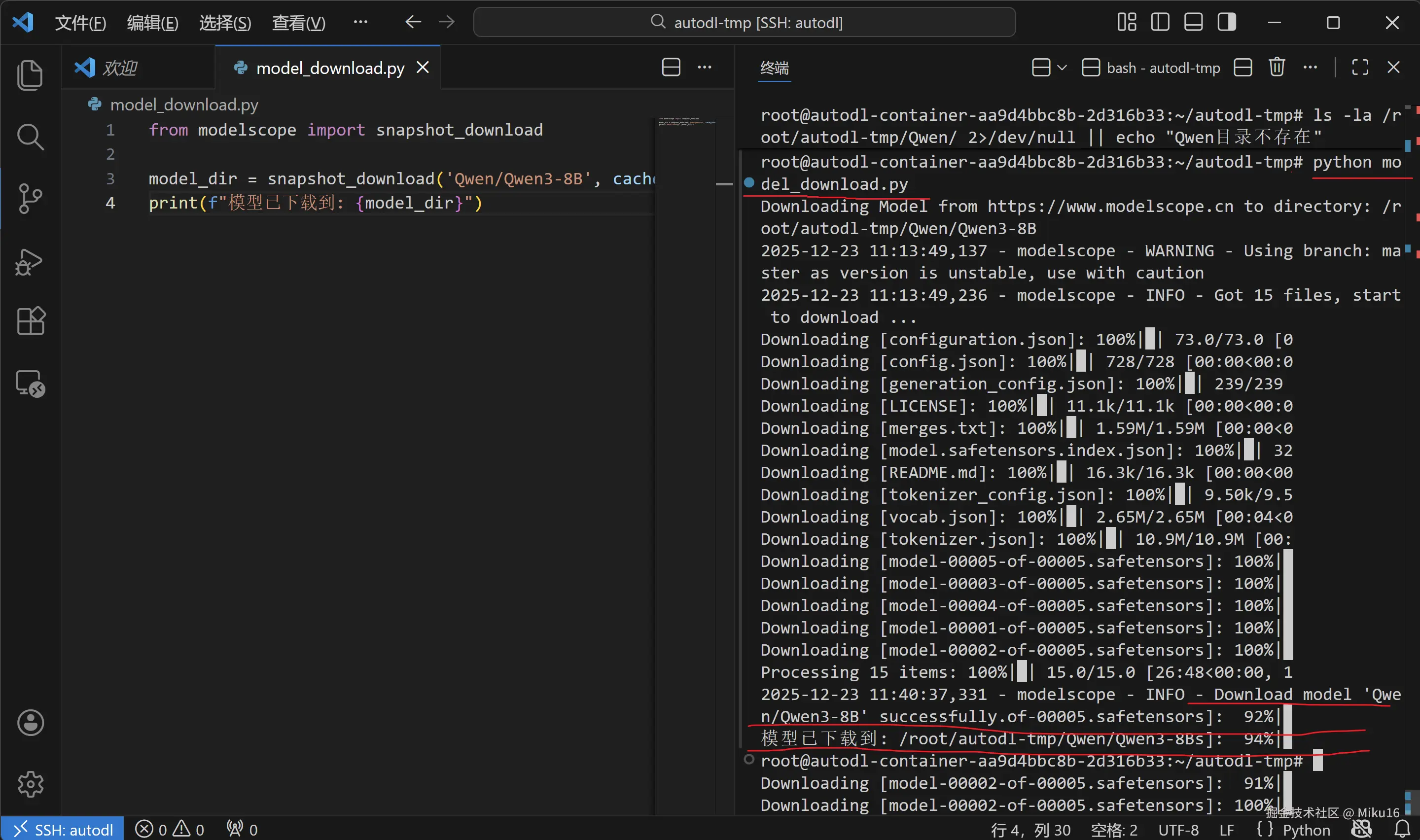 | 4 | 下载 Qwen3-8B 模型(~16GB) | Done |