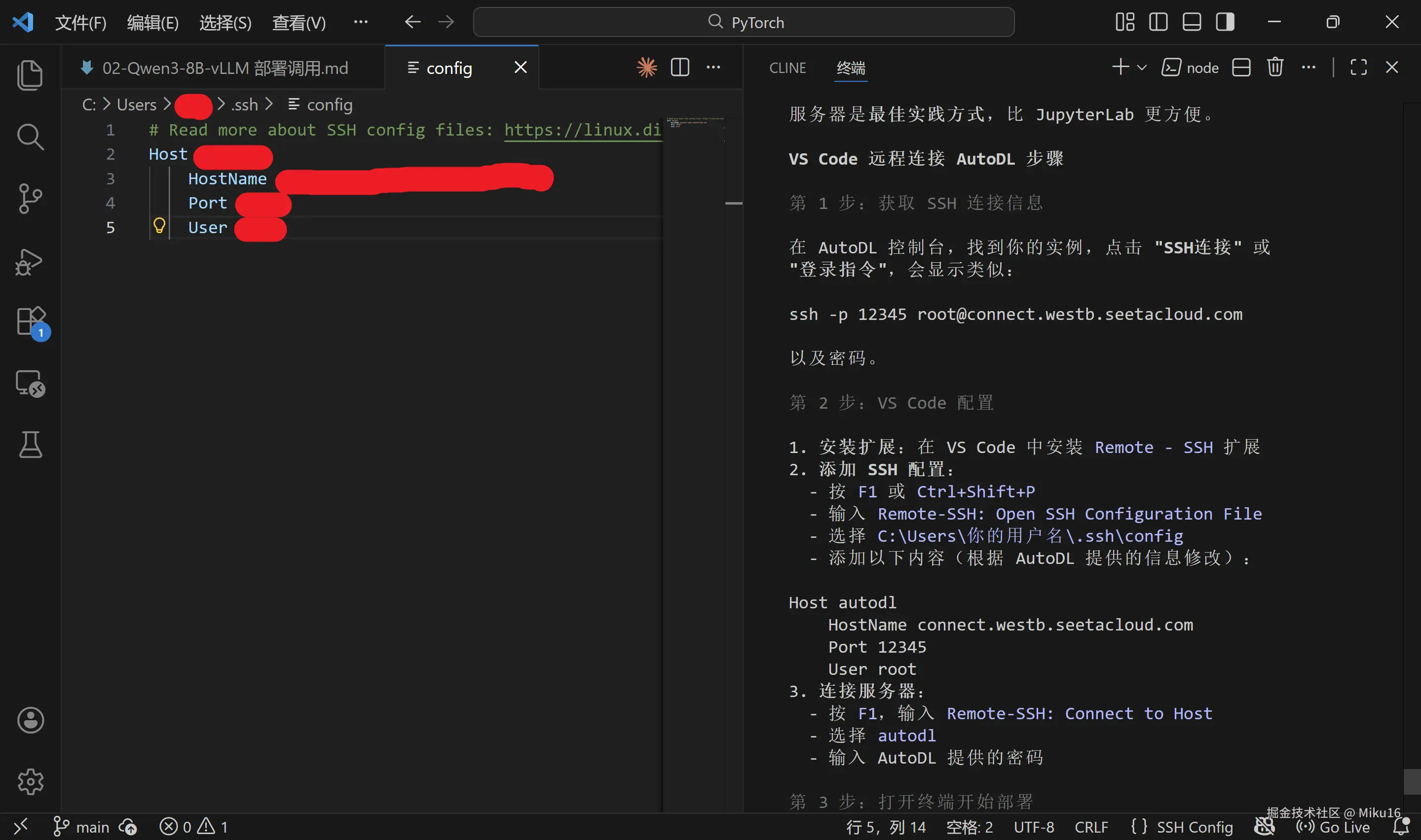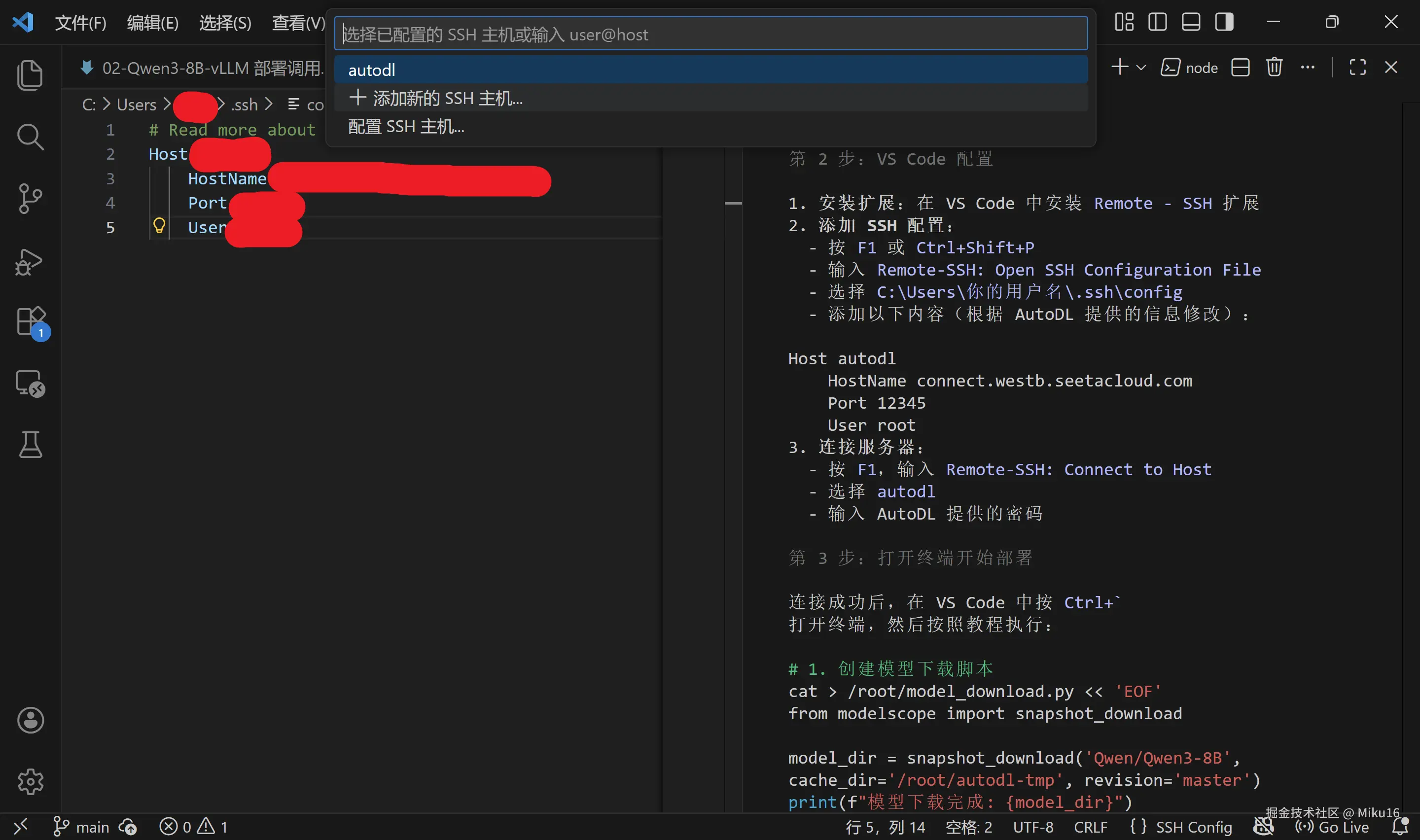 HostName和Port替换为你实际的 AutoDL 实例信息。