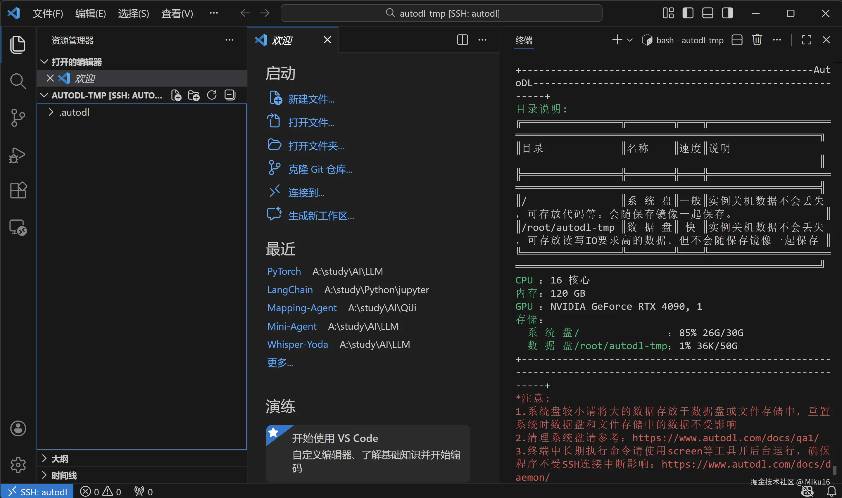 解决方案:使用提供终端环境的平台(如 AutoDL)