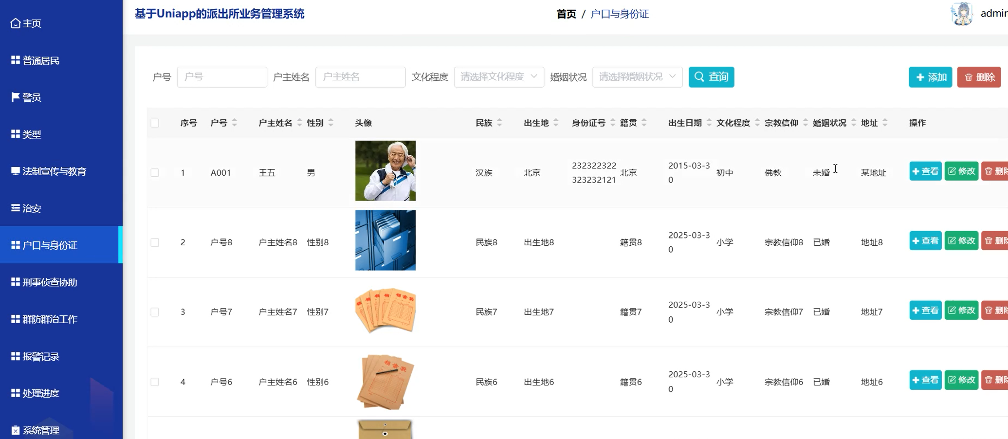 户口与身份证页面