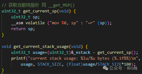 读取sp寄存器可以获得当前栈指针位置,获取当前栈使用情况
