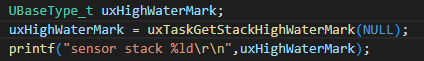 这个函数会获取task运行过程中栈空间的最小剩余量,这个值越小栈越接近溢出,根据这个值调整栈空间的大小,一般预留20%左右的余量。