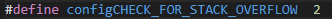 这个宏的值可以是1、2、3(较新的版本才会有3),1检测栈指针是否越界,2检测栈区最后的20字节是否被覆盖,3检测ISR的栈。实测1会直接触发系统的HardFault并调用HardFault_Handler回调函数,2会调用钩子函数,推荐设置成2,3不会调用钩子函数。建议在HardFault回调中也输出信息,