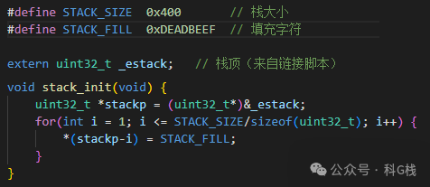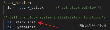 stack_init函数可以在main中最开始调用,不过会破坏进入main的调用栈数据,由于嵌入式系统进入main后一般不会返回,所以不影响程序的运行。如果不想破坏可以把这个函数放到startup文件中的Reset_Handler函数内SystemInit之前,这样完全不会影响后边程序运行的栈区数据。
