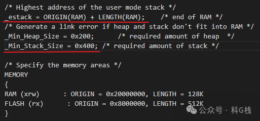栈的信息在ld链接文件中定义,ld中的=是设置变量的地址,而不是变量的值,所以引用的时候需要加&。栈指针指向的是栈区已使用的末端地址,而不是未使用的首地址,所以要先减再赋值。