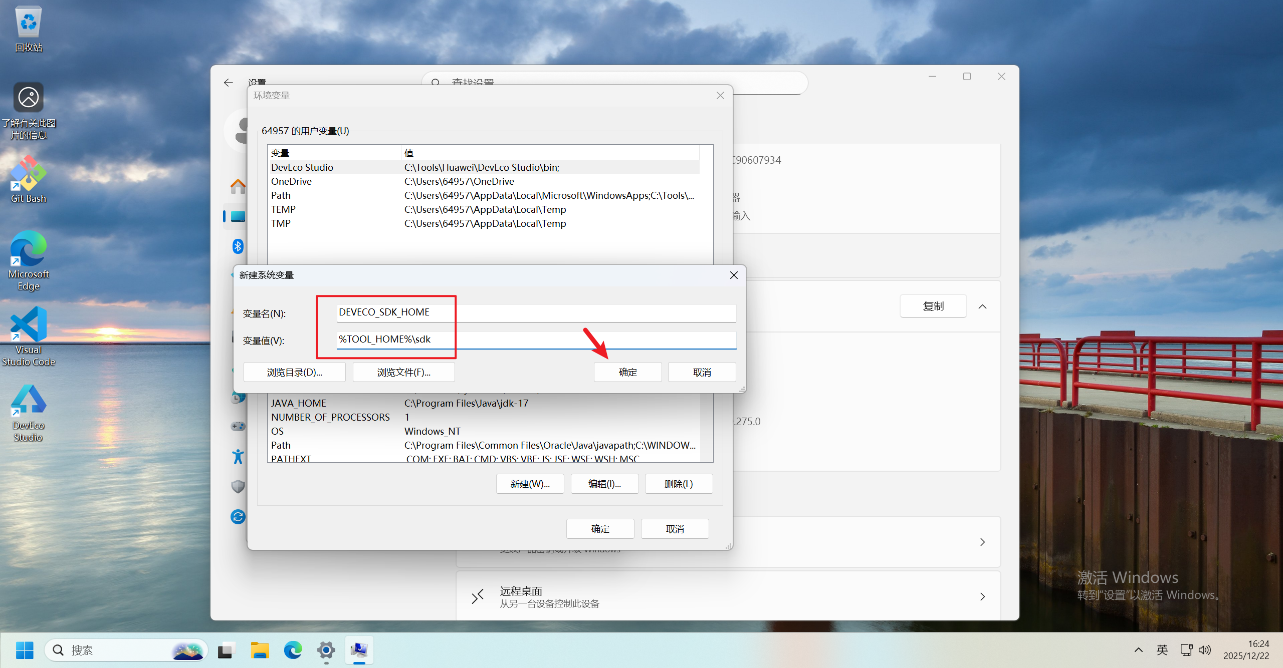 📌 步骤 4:配置 DEVECO_SDK_HOME 变量