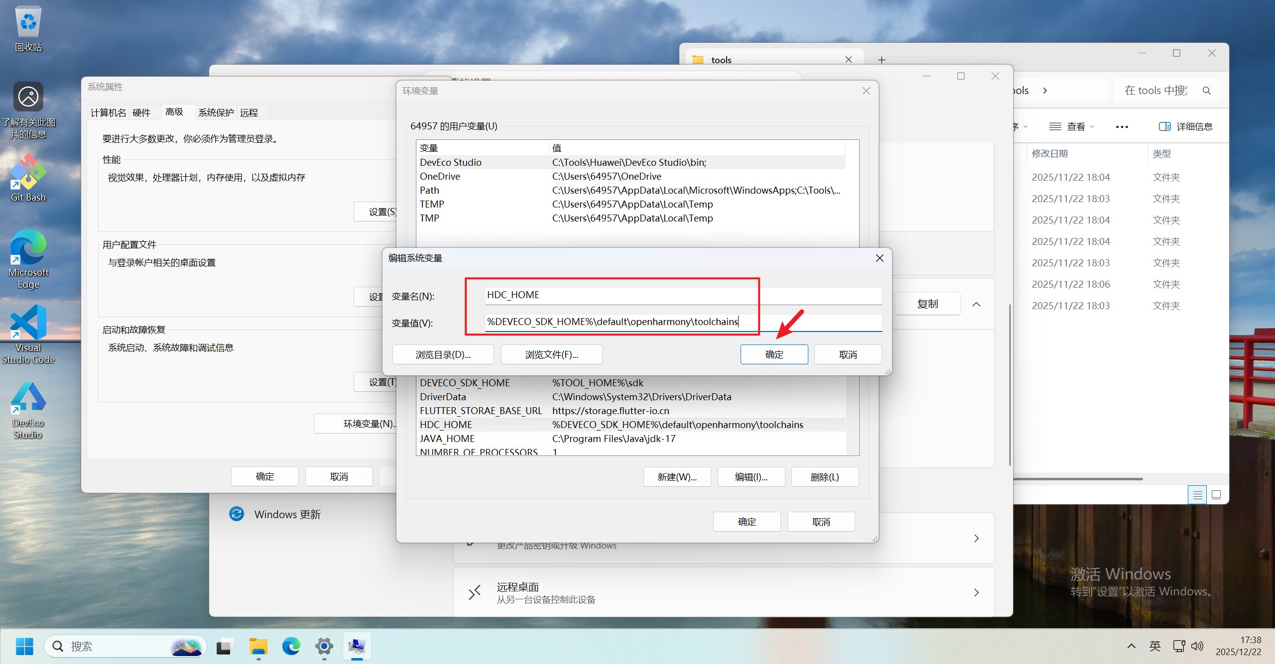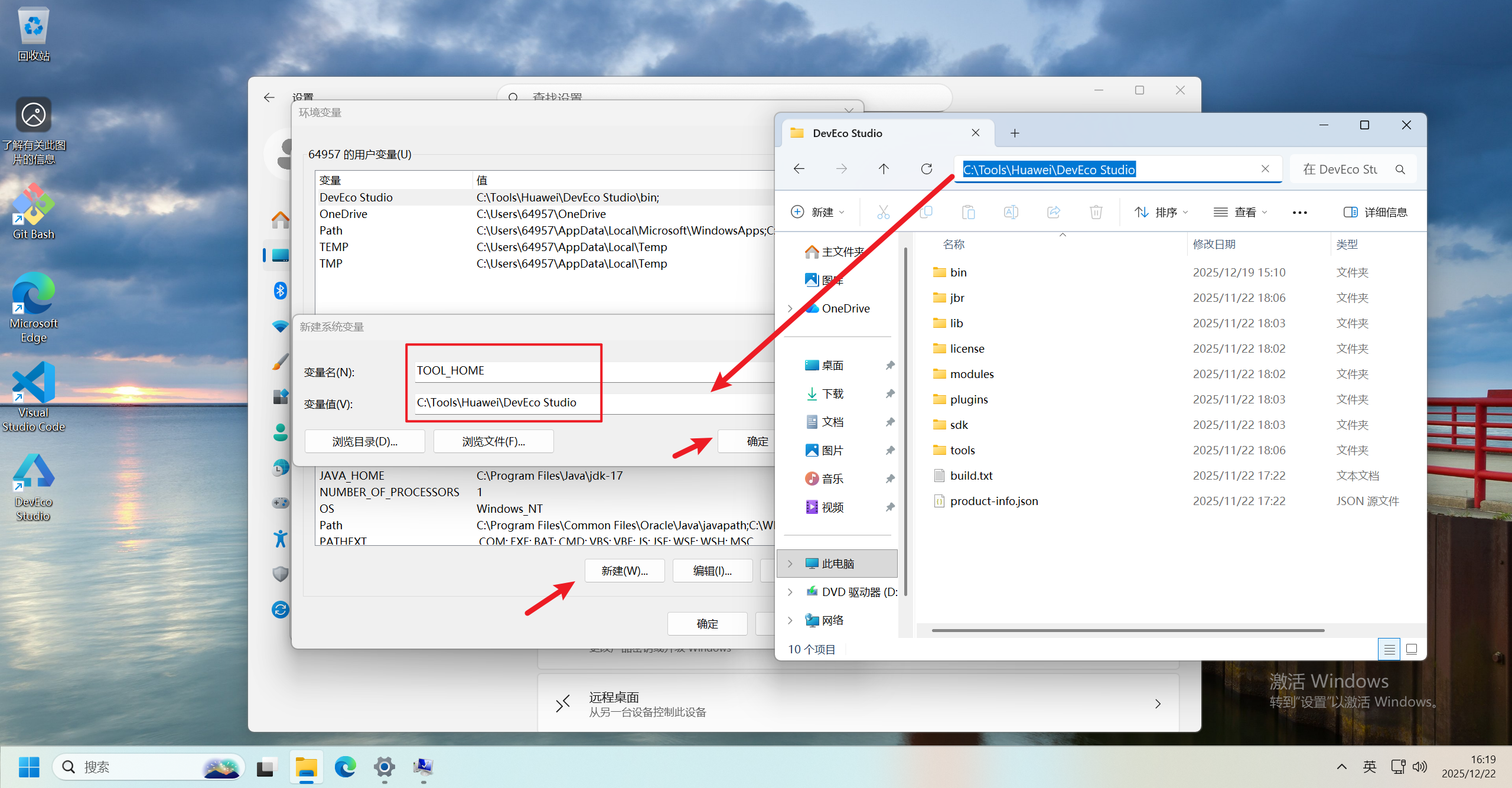 TOOL_HOME - 变量值(V):DevEco Studio 的实际安装路径