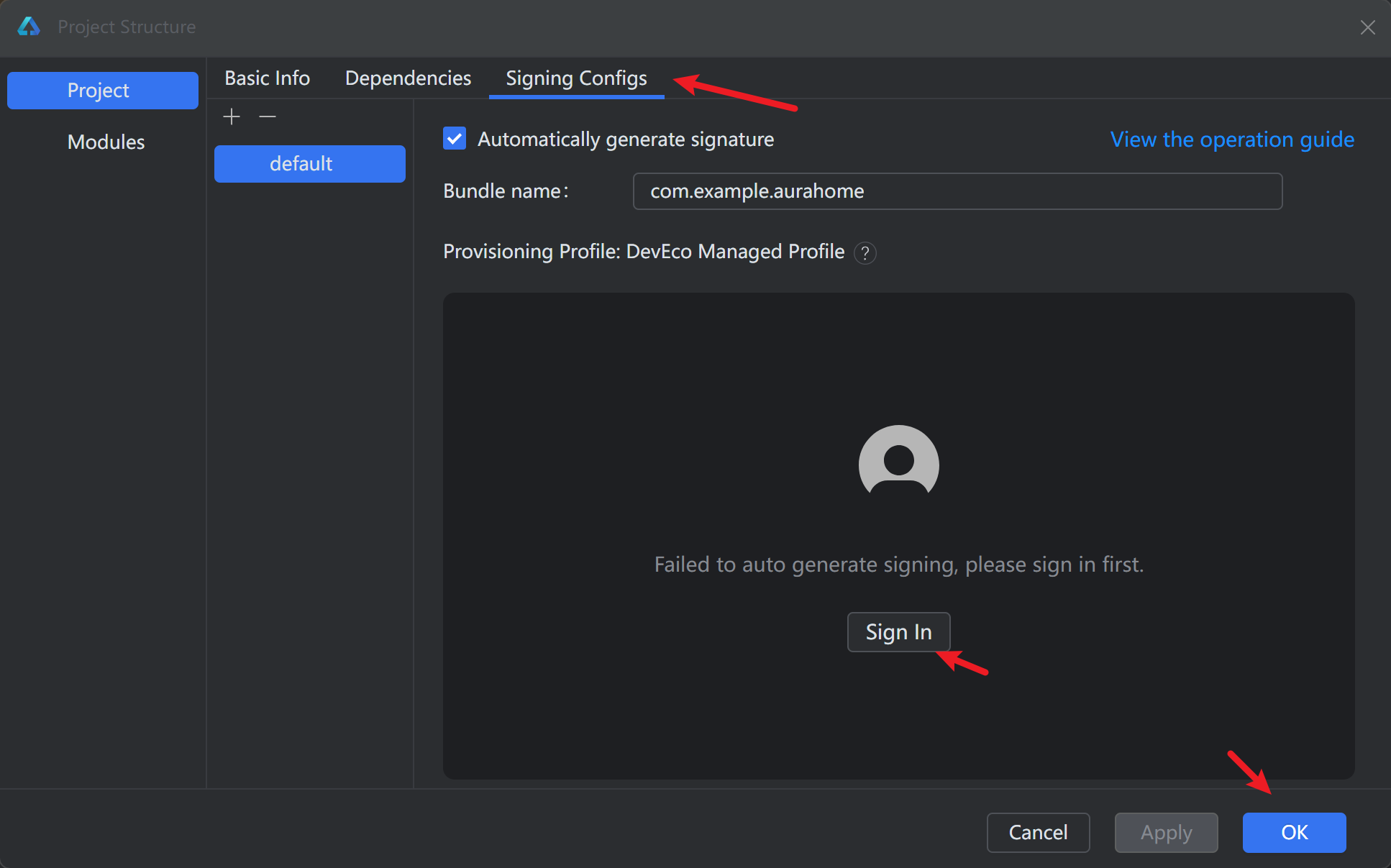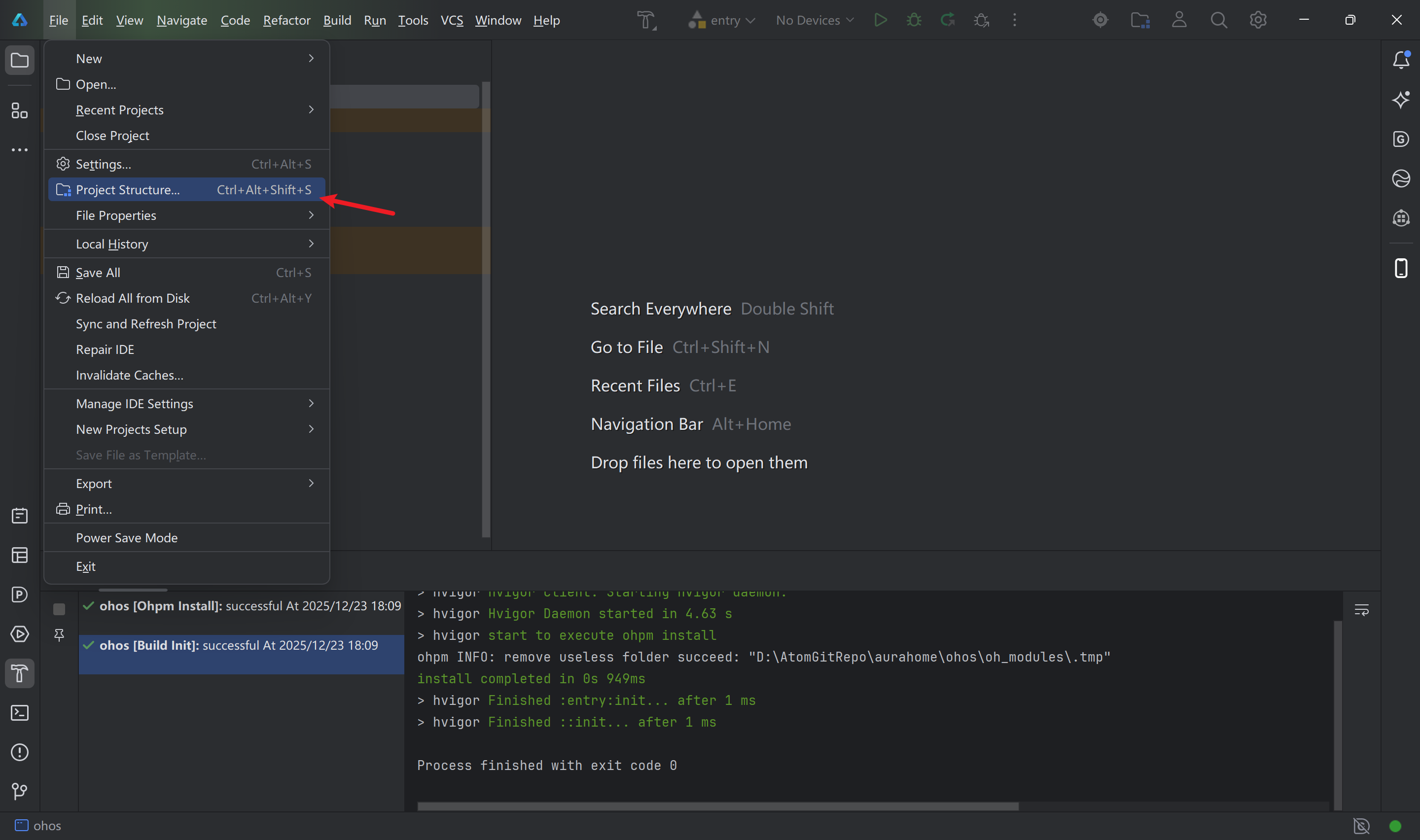 - 📋 在 DevEco Studio 中,点击 "File" → "Project Structure..." 打开工程配置界面