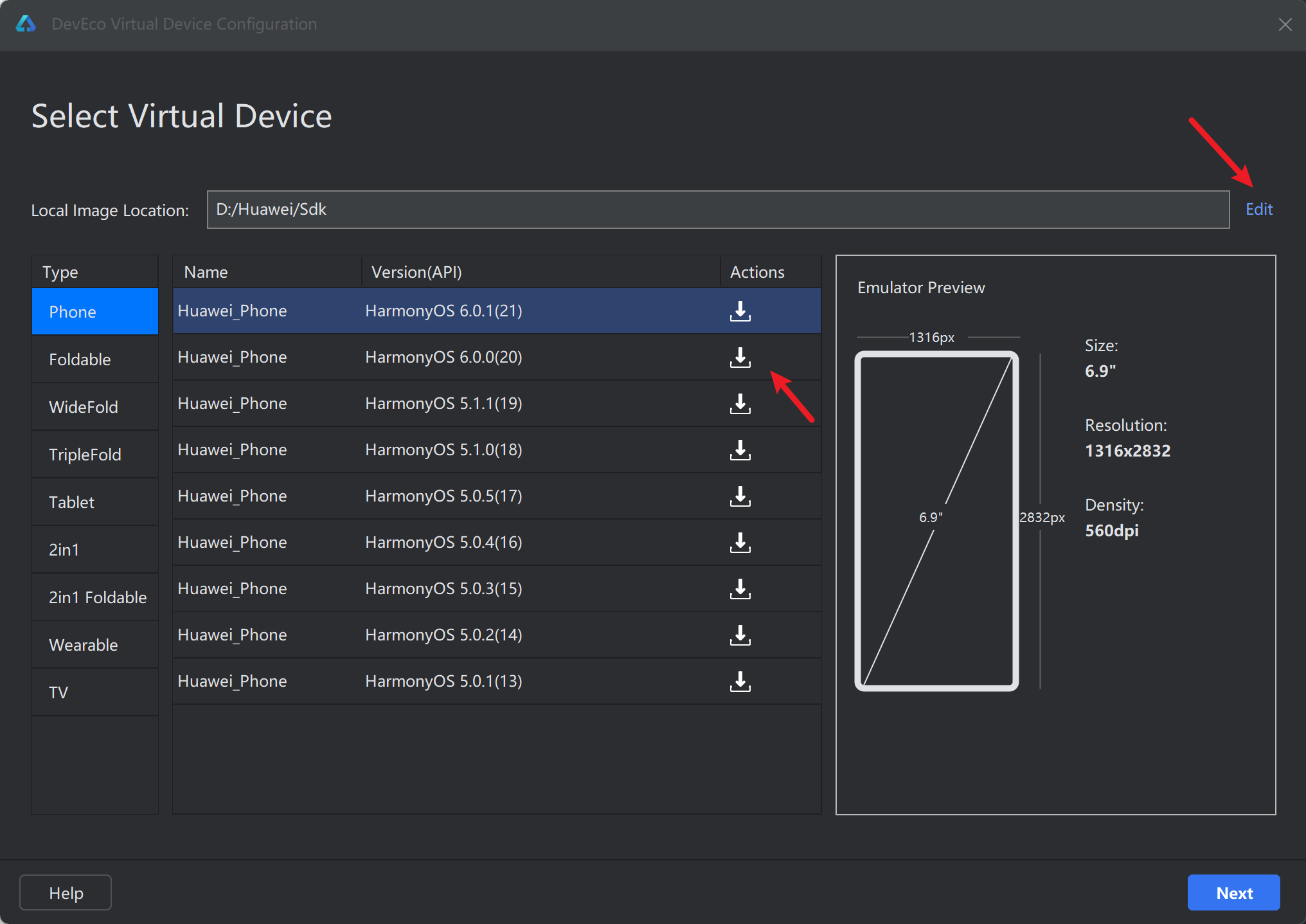 📂 如果需要,点击 "Edit" 更改模拟器镜像存储路径