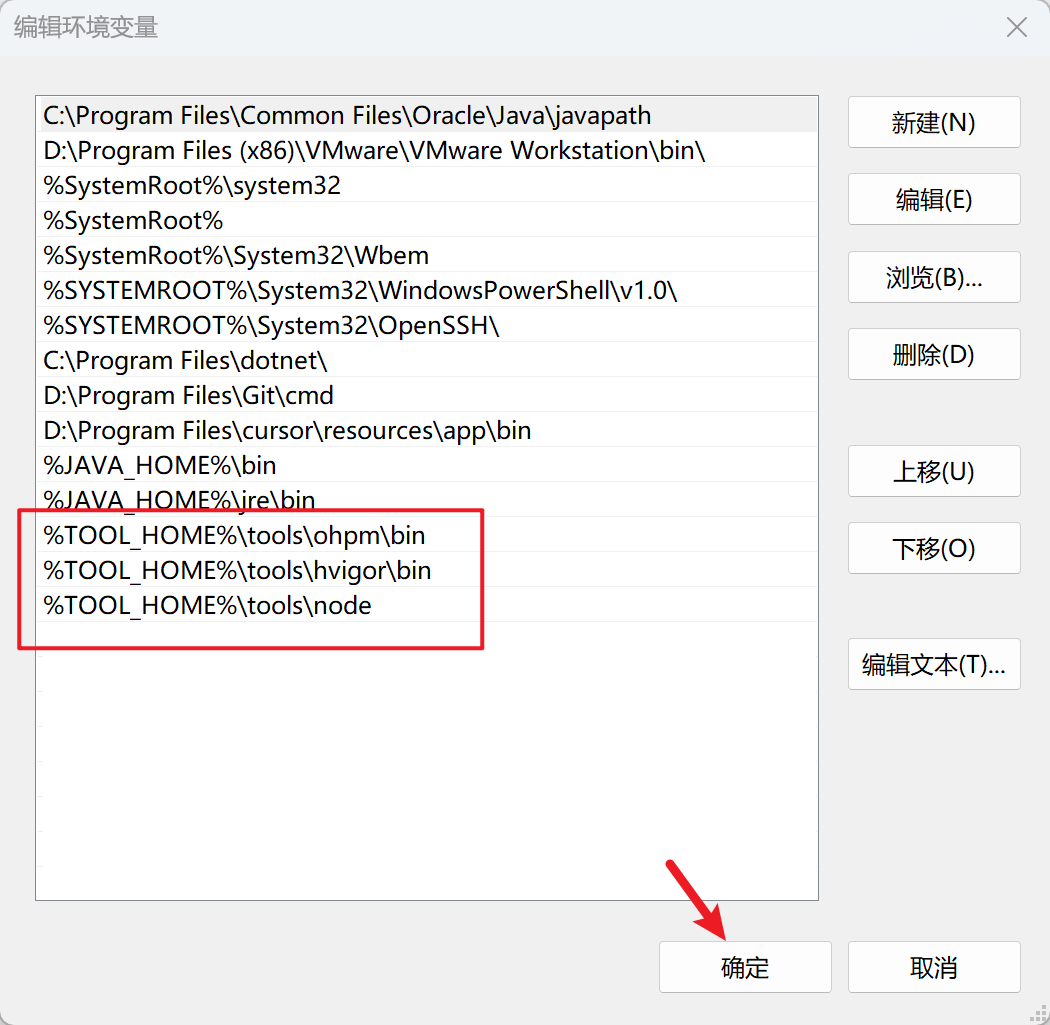 %TOOL_HOME%会引用之前设置的TOOL_HOME变量值,这样如果 DevEco Studio 安装路径改变,只需要修改TOOL_HOME即可。 - 变量名(N) :