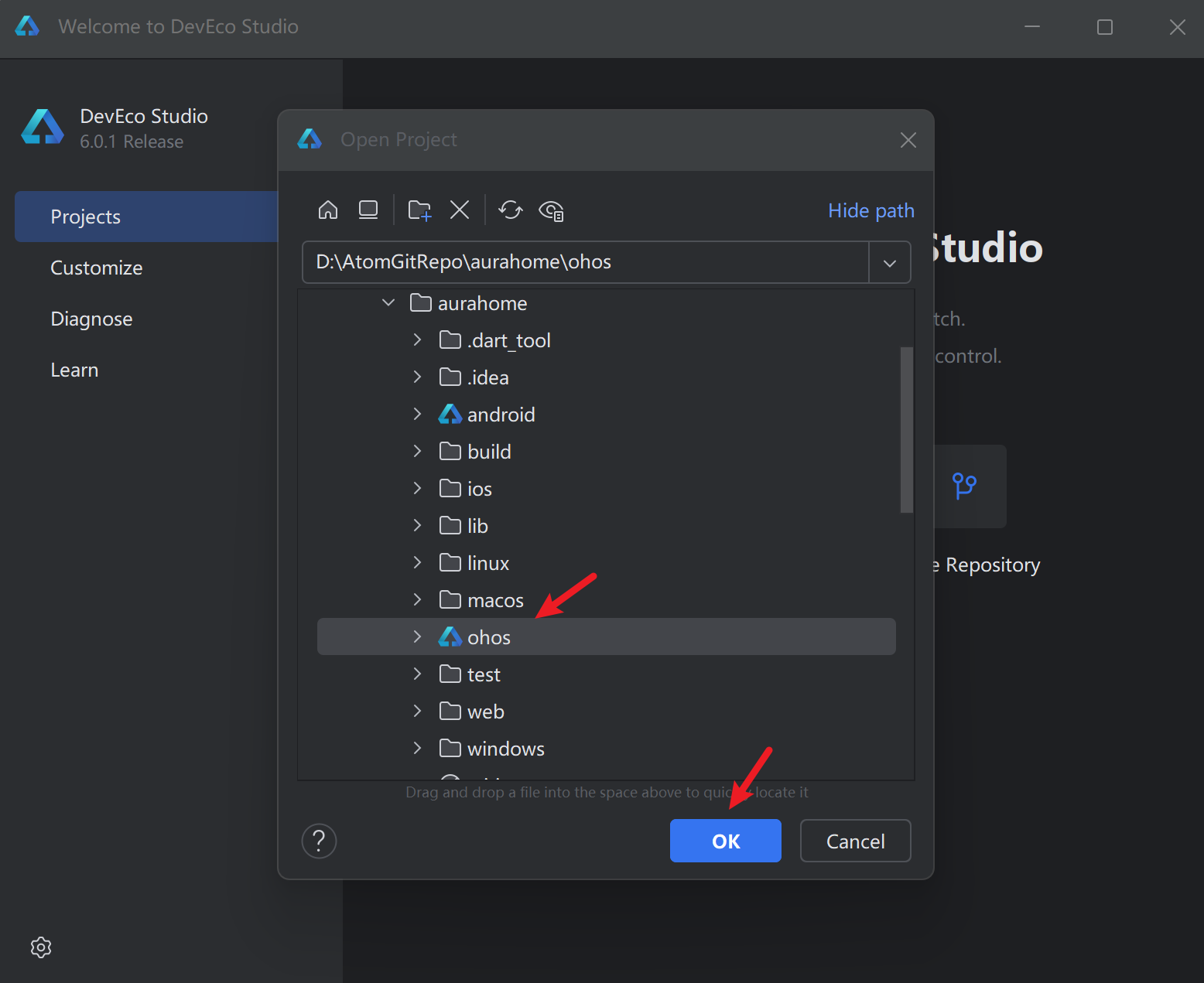 📌 步骤 1:使用 DevEco Studio 打开项目