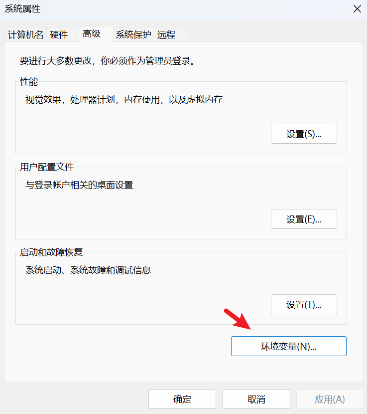 - 🔧 在系统属性面板中,点击 "环境变量(N)..." 按钮
