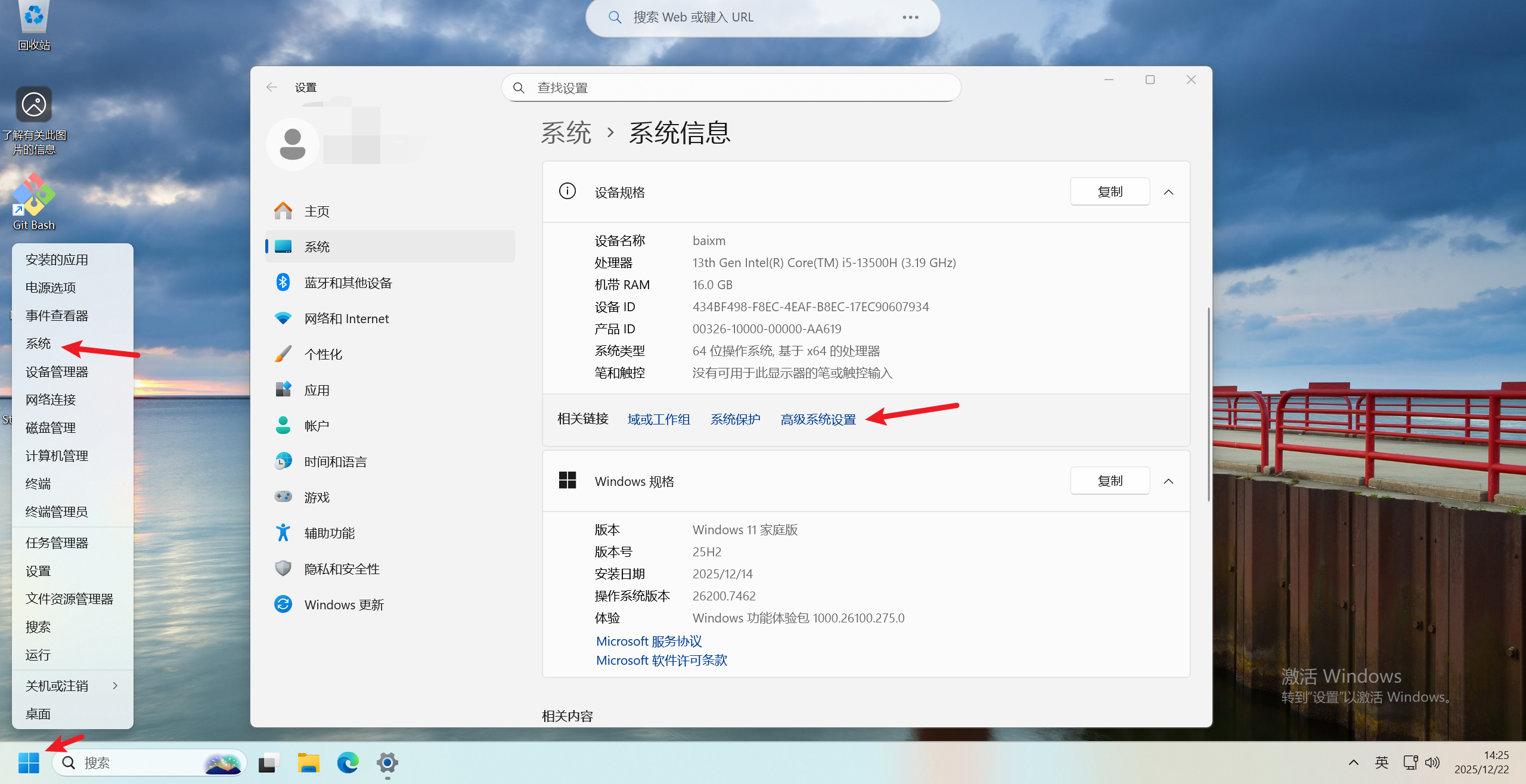 Win + X) - 👆 在列表中点击 "系统" 打开系统面板