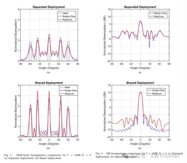 共享部署 :所有N根天线同时服务雷达与通信,通信信号直接作为雷达探测波形,通过联合优化波束成形矩阵,平衡雷达波束图质量与通信性能。