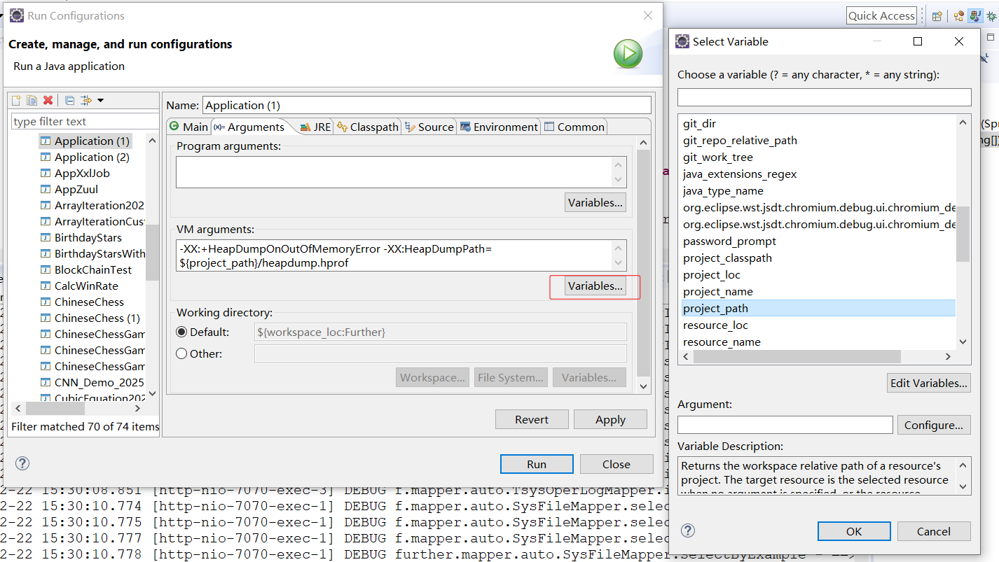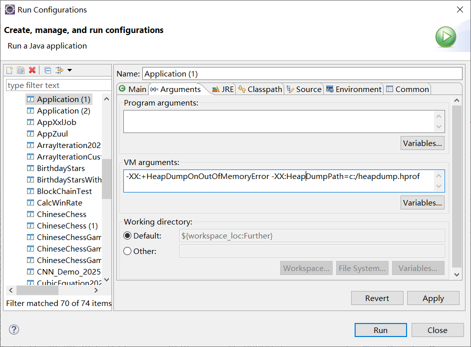 在 VM arguments(VM 参数)输入框中,添加以下参数
