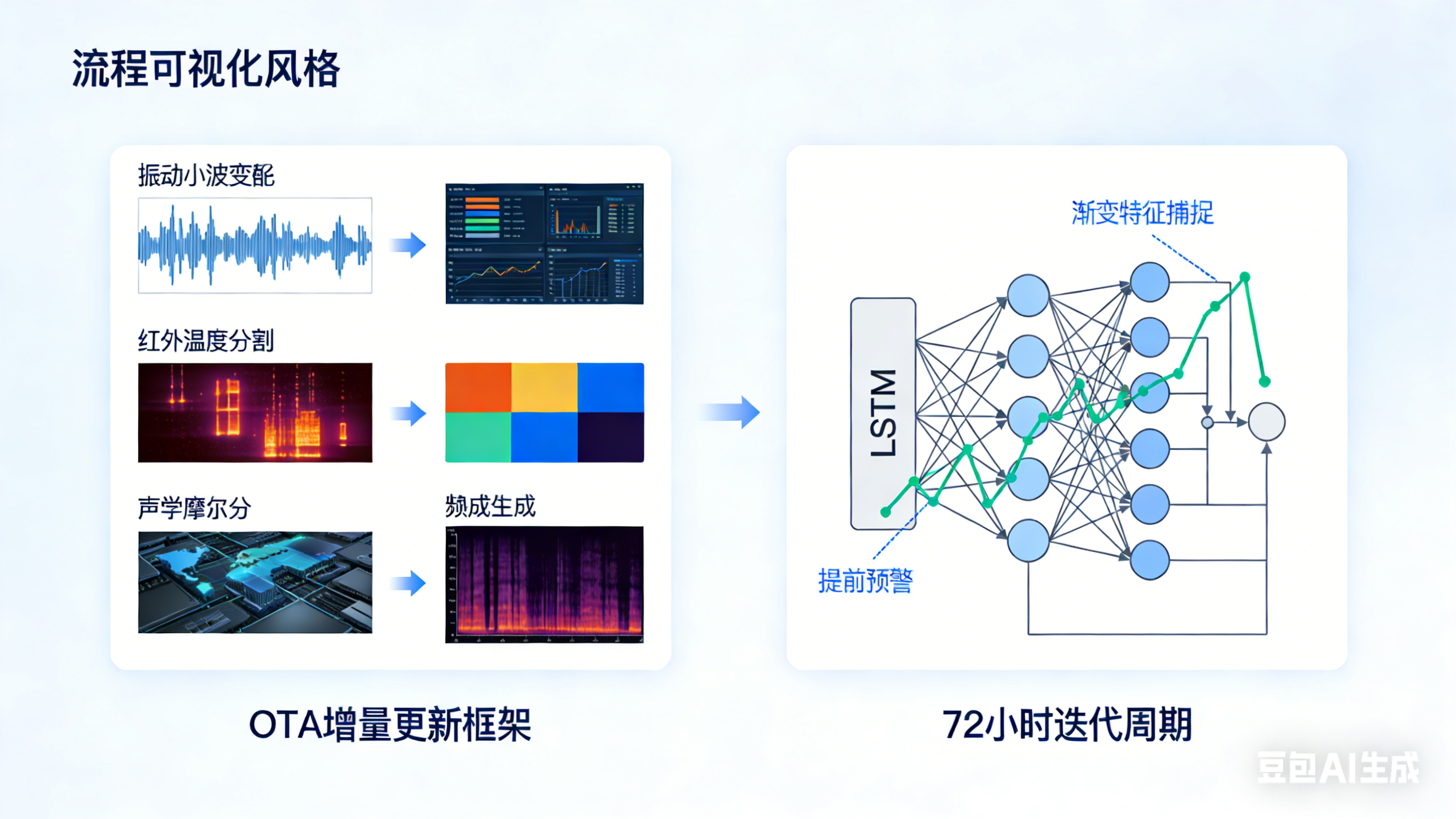 增量训练优化:设计OTA增量更新框架,将模型分为"基础特征层+故障判别层",新增数据仅需微调判别层参数,无需全量重训,使模型迭代周期从传统的7-10天缩短至72小时。