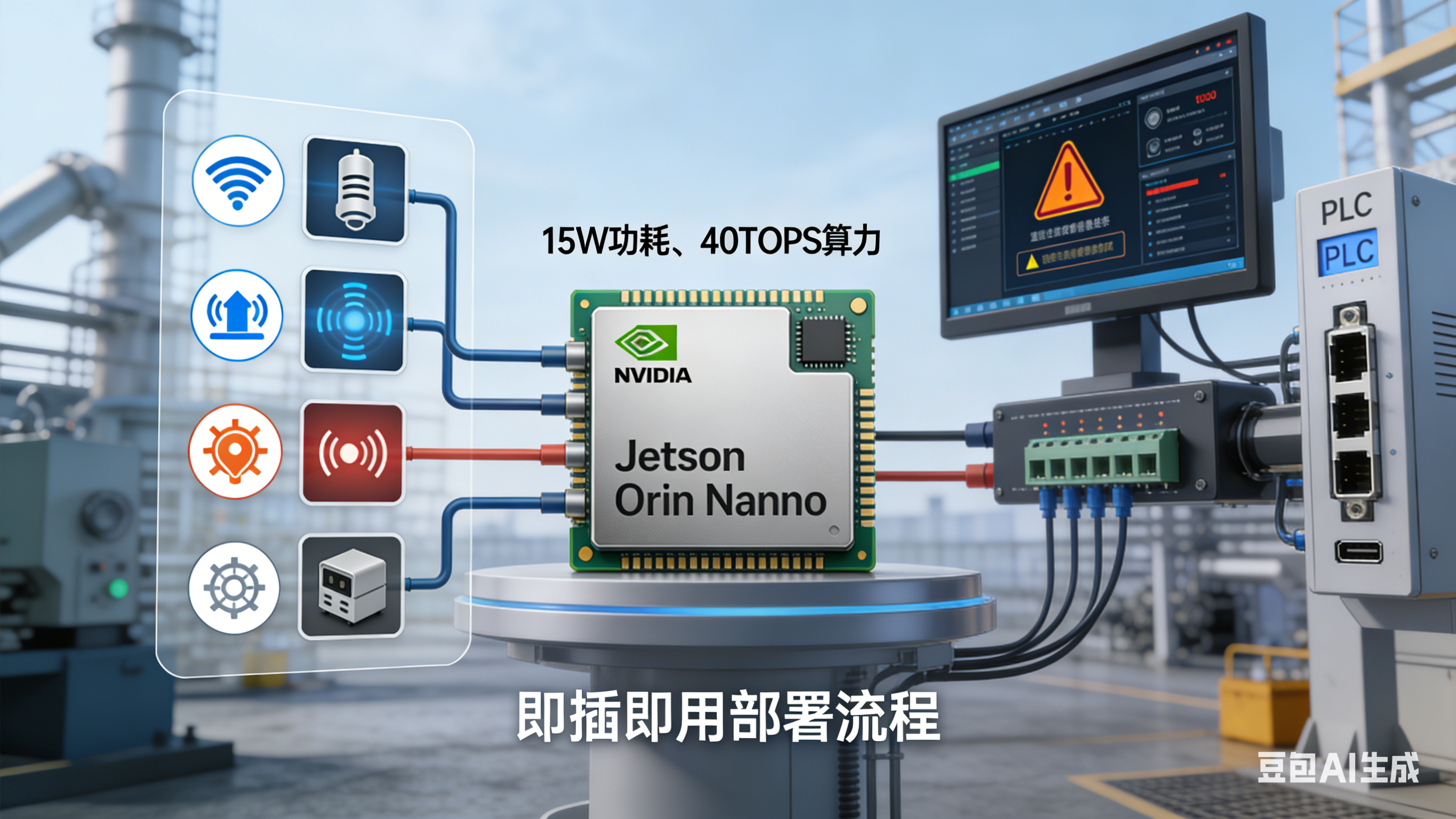 工厂仅需三步即可完成部署:①将Jetson Orin Nano模块与设备传感器、中控系统对接;②通过远程指令加载预训练模型与配置文件;③启动系统后自动完成传感器校准与模型适配,全程耗时<2小时,无需专业AI工程师现场调试,降低工厂技术使用门槛。