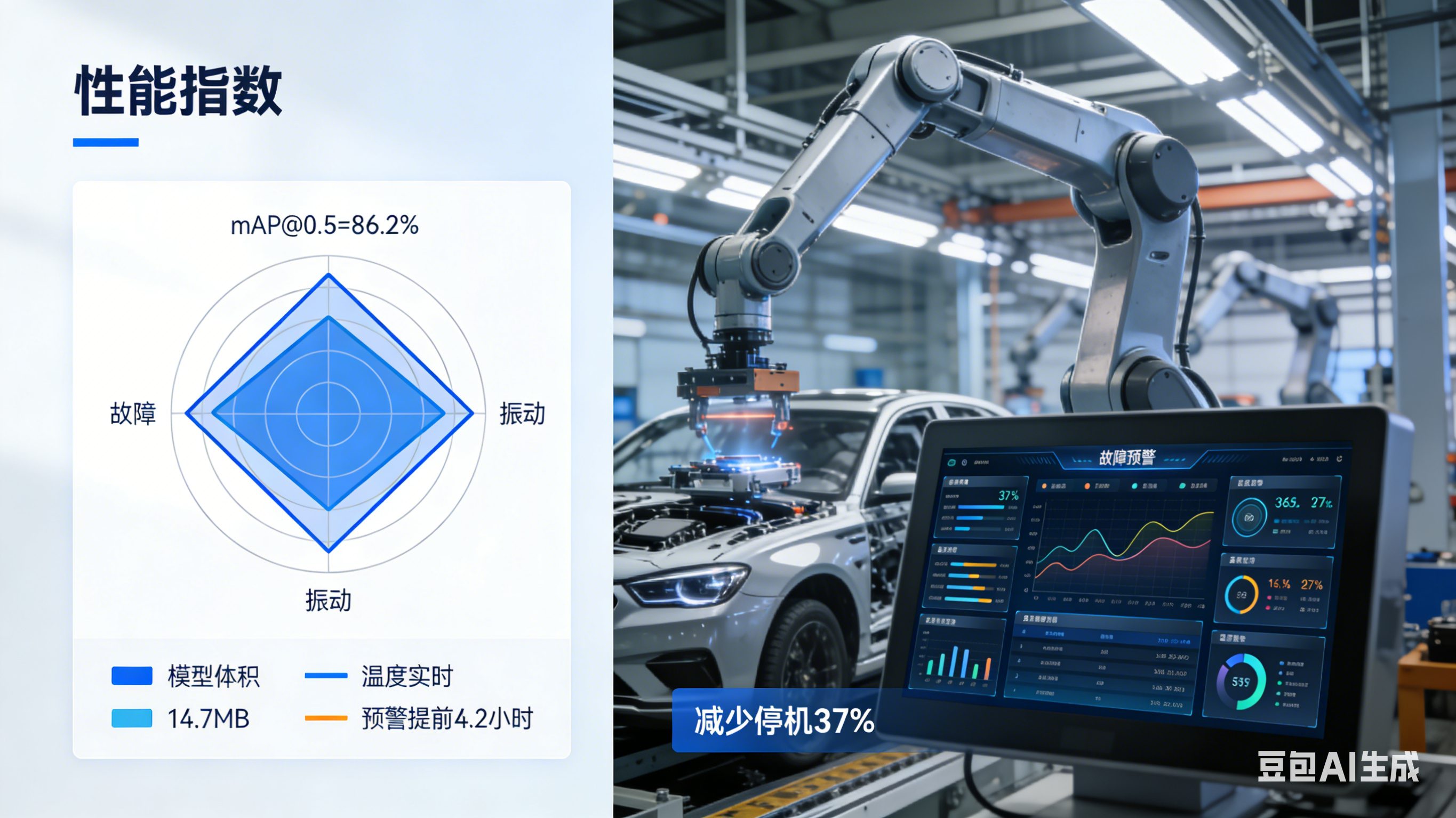 识别精度:mAP@0.5=86.2%(涵盖轴承、电机、齿轮箱等8类常见设备故障,严重故障识别准确率95.3%,轻微故障识别准确率81.7%);