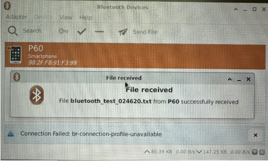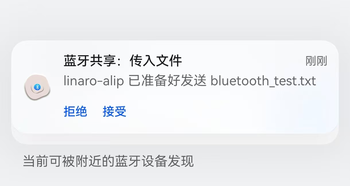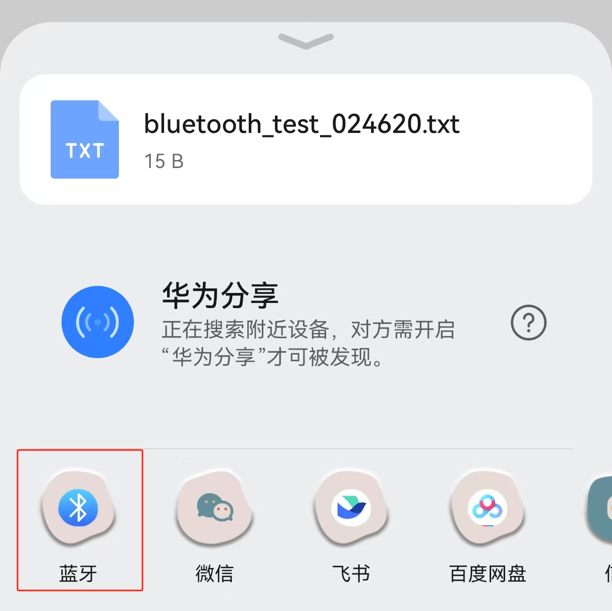 手机通过蓝牙将 bluetooth_test.txt 发送到开发板,开发板接收