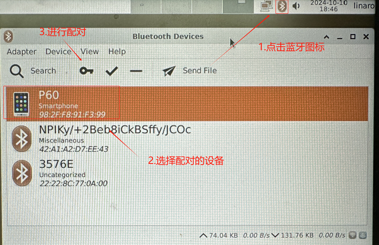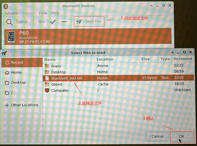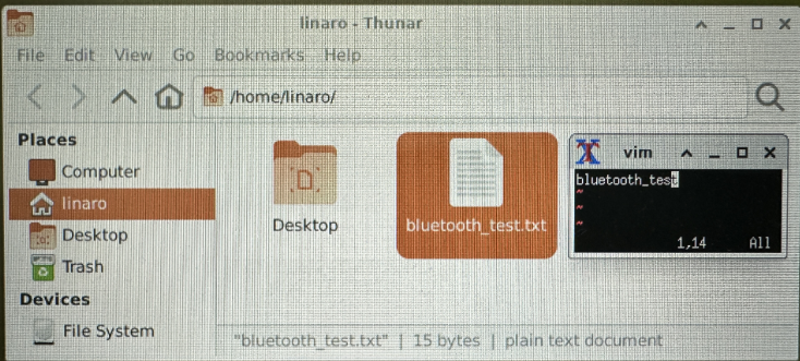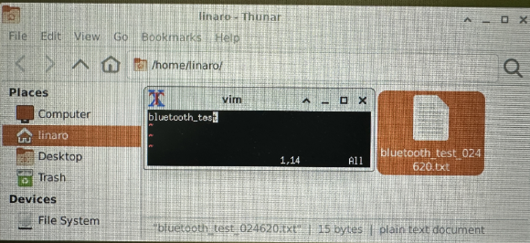 首先在 home/linaro 文件夹下新建一个 bluetooth_test.txt 文件,内容为:bluetooth_test