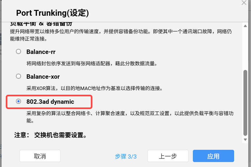 点击应用会有一个提示layer选择,mac还是mac+ip这个根据自己的交换机选择,网上查一下交换机支持那种模式。我选的是mac+ip。