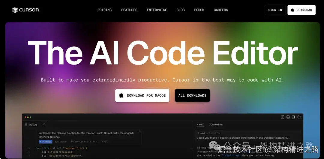 讲真,现在写代码的 IDE ,Cursor 绝对算头号网红!它自带的 AI 助手特别能帮你省事,直接把需求告诉它,Cursor 就能帮你写代码、查 bug、改逻辑,甚至自动重构,流程爽到飞起。你看结果、提改动就行,代码的细节交给 AI 搞定,完全贴合 Vibe Coding 那种"沉浸-反馈-再调整"的风格。
