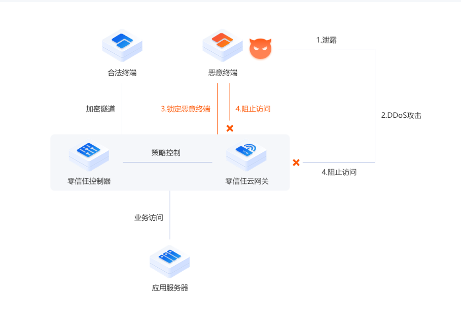 应用安全管控 :AntiDDoS-SDK 可对应用自身风险进行检测,通过APP签名技术,有效识别应用风险,防止应用被广告病毒植入、二次打包、功能屏蔽、仿冒钓鱼等恶意破解。基于SASE架构,隐藏业务真实主机,黑客无法在互联网上发起扫描和定向入侵