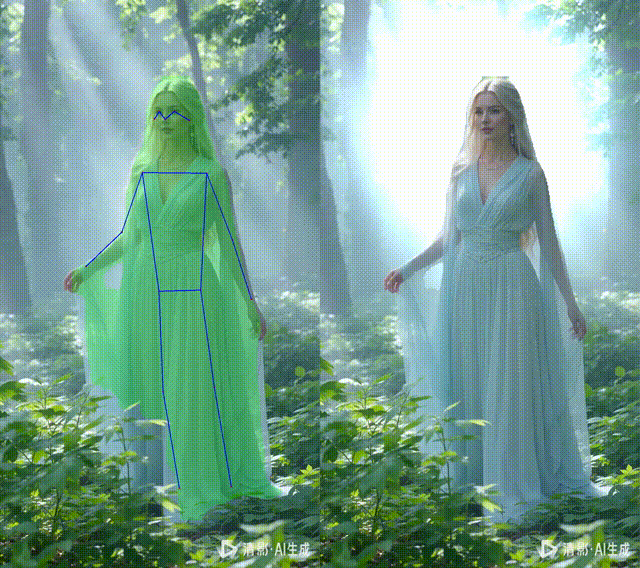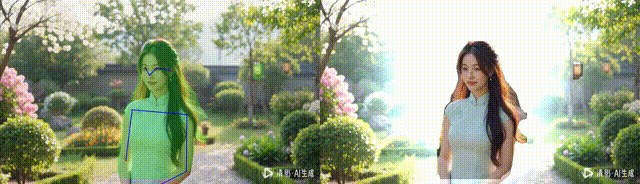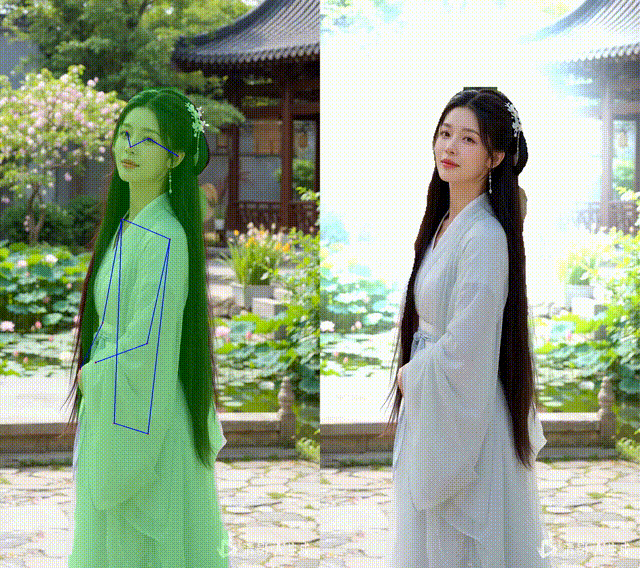 我们将人体分割掩码、关键点骨架与径向衰减模型结合,构建了一种语义驱动的佛光(Halo)视觉效果。