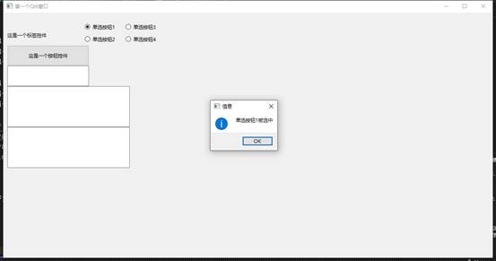 QMessageBox::information(this, "信息", "单选按钮1被选中");