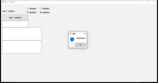 QMessageBox::information(this, "信息", "单选按钮2被选中");
