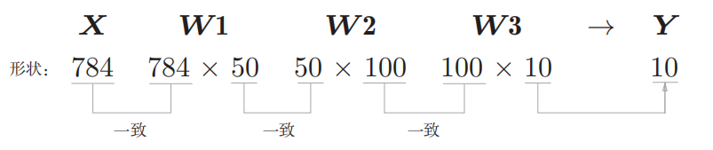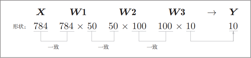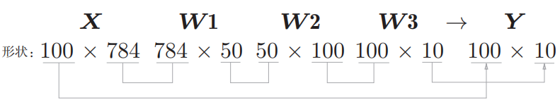 输入数据的形状为 100 _× _784,输出数据的形状为 100 _× _10。这表示输入的100张图像的结果被一次性输出了。
