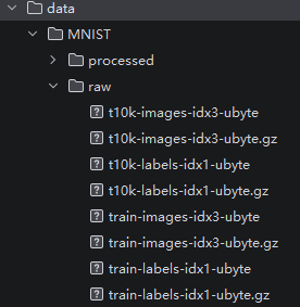 在上述文件中,训练集train一共包含了 60000 张图像和标签,而测试集一共包含了 10000 张图像和标签。