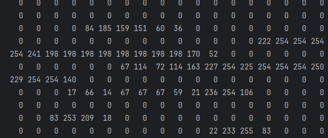 没有做归一化,取出测试数据集中的第1条记录,打印内容,会发现其值的返回都是 0-255