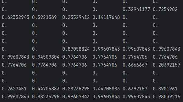 做归一化后,再打印,会发现其范围已经是 [0,1] 的数据了: